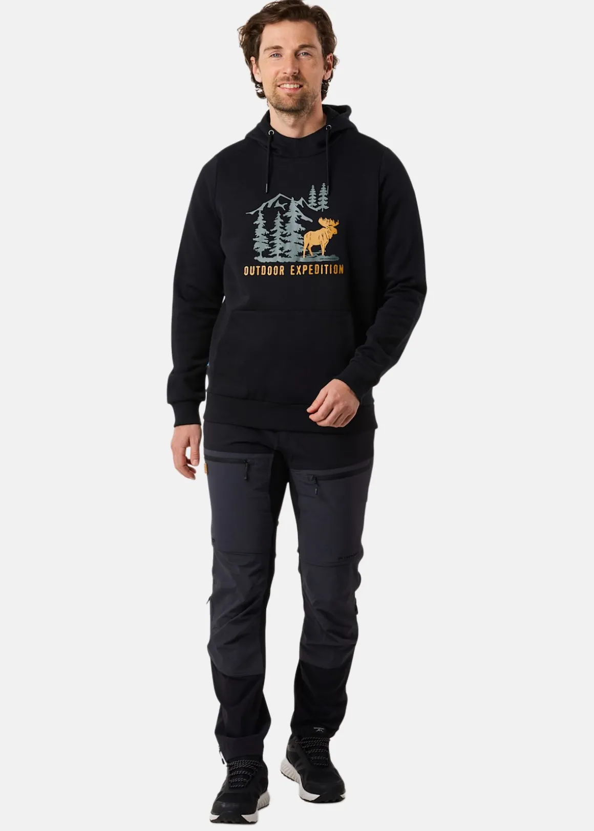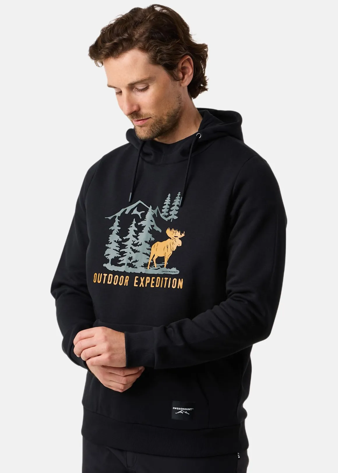 Mjuk tröja med justerbar huva och en stor ficka fram.