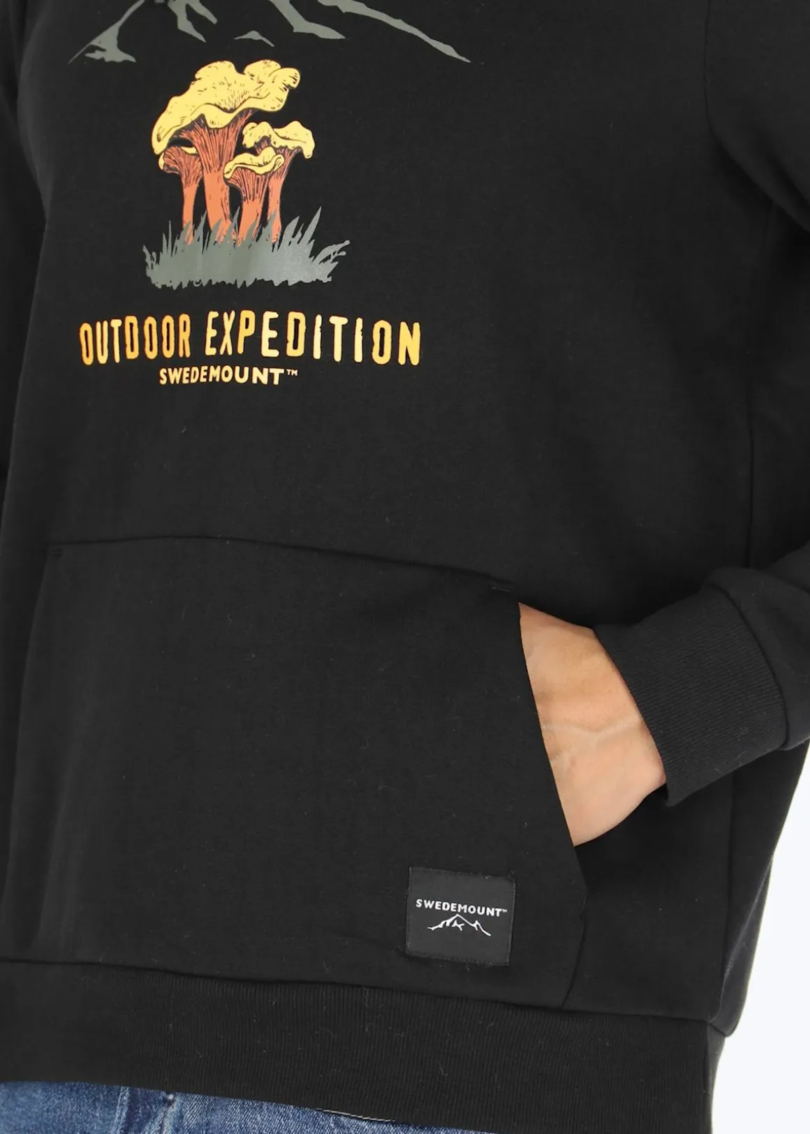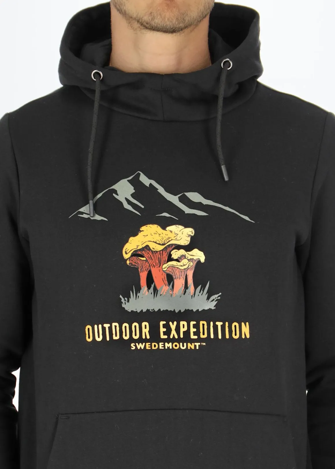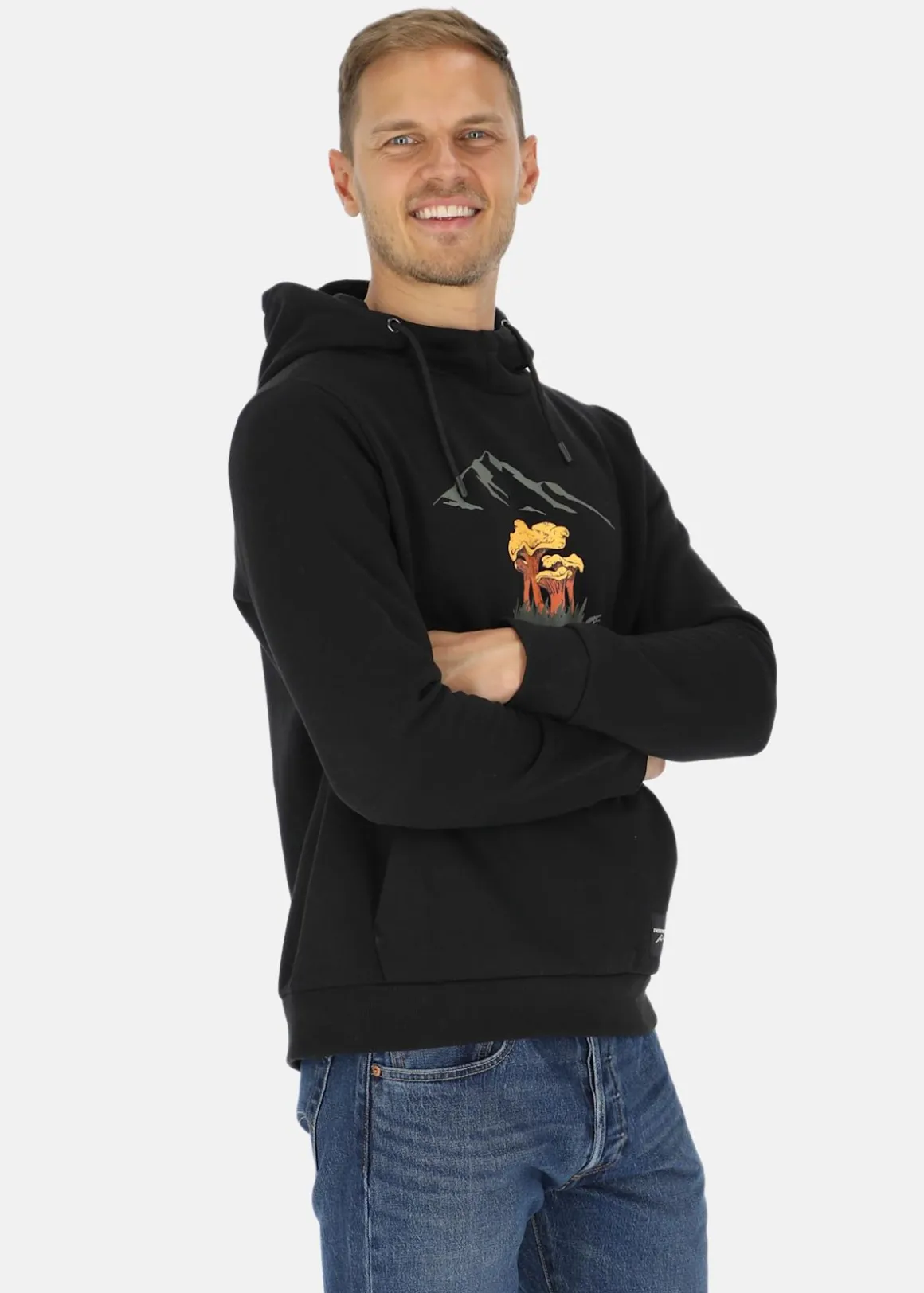 Mjuk tröja med justerbar huva och en stor ficka fram.
