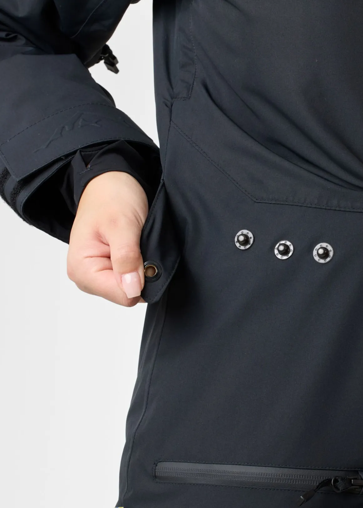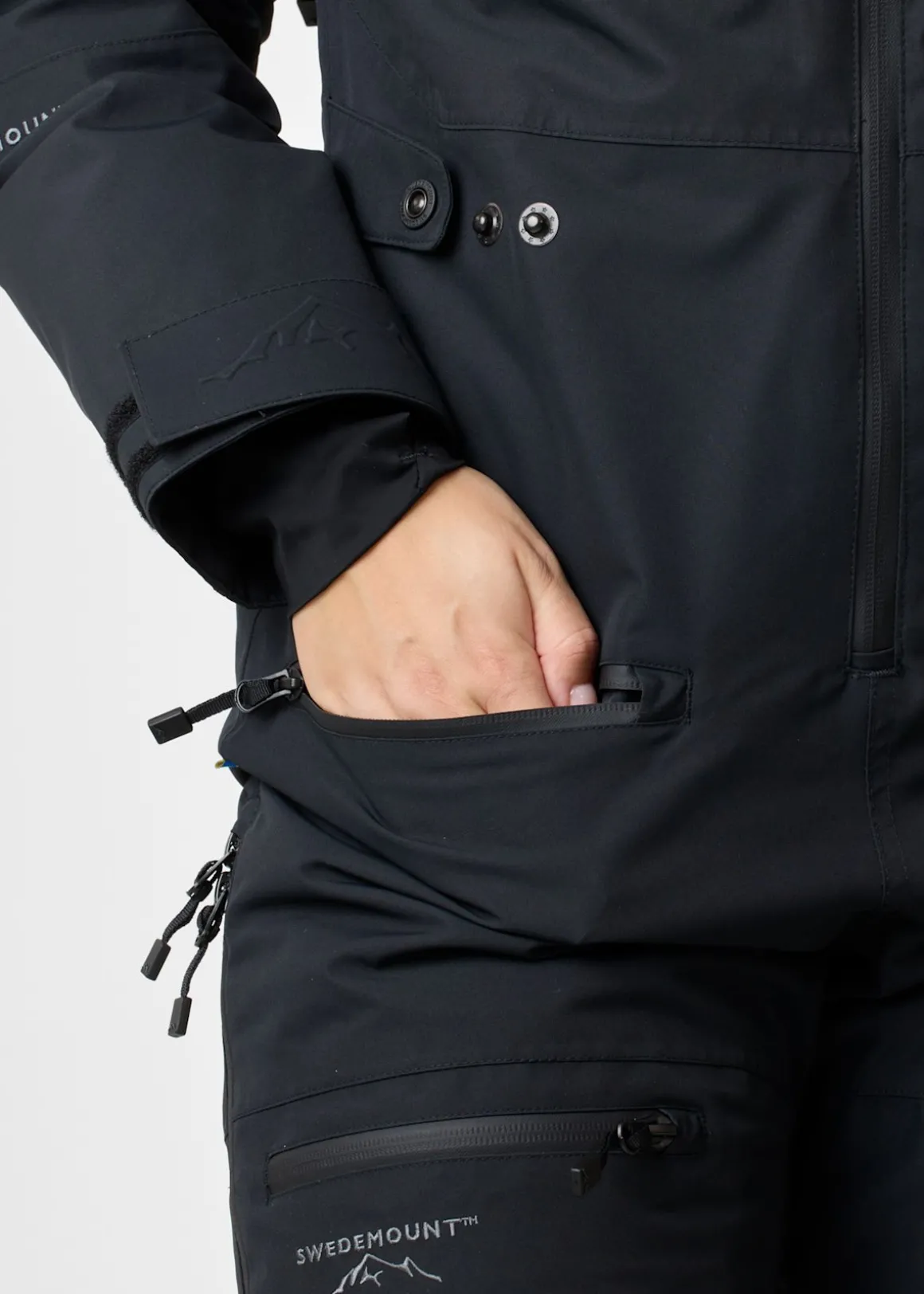 Freeride Skisuit är en overall tillverkad av mycket vattentätt och vindtåligt skalmaterial som gör den till en utmärkt partner för offpist-äventyr, skidåkning i backarna och snöskoterturer. Denna overall kombinerar hög prestanda med ett tunt vadderat skal och kan enkelt anpassas med en lag-på-lager-princip. Den imponerande vattentätheten på 20 000 mm vattenpelare och vindtåligheten gör denna overall till ett pålitligt val för skidentusiaster som prioriterar både skydd och prestanda i snöiga förhållanden.