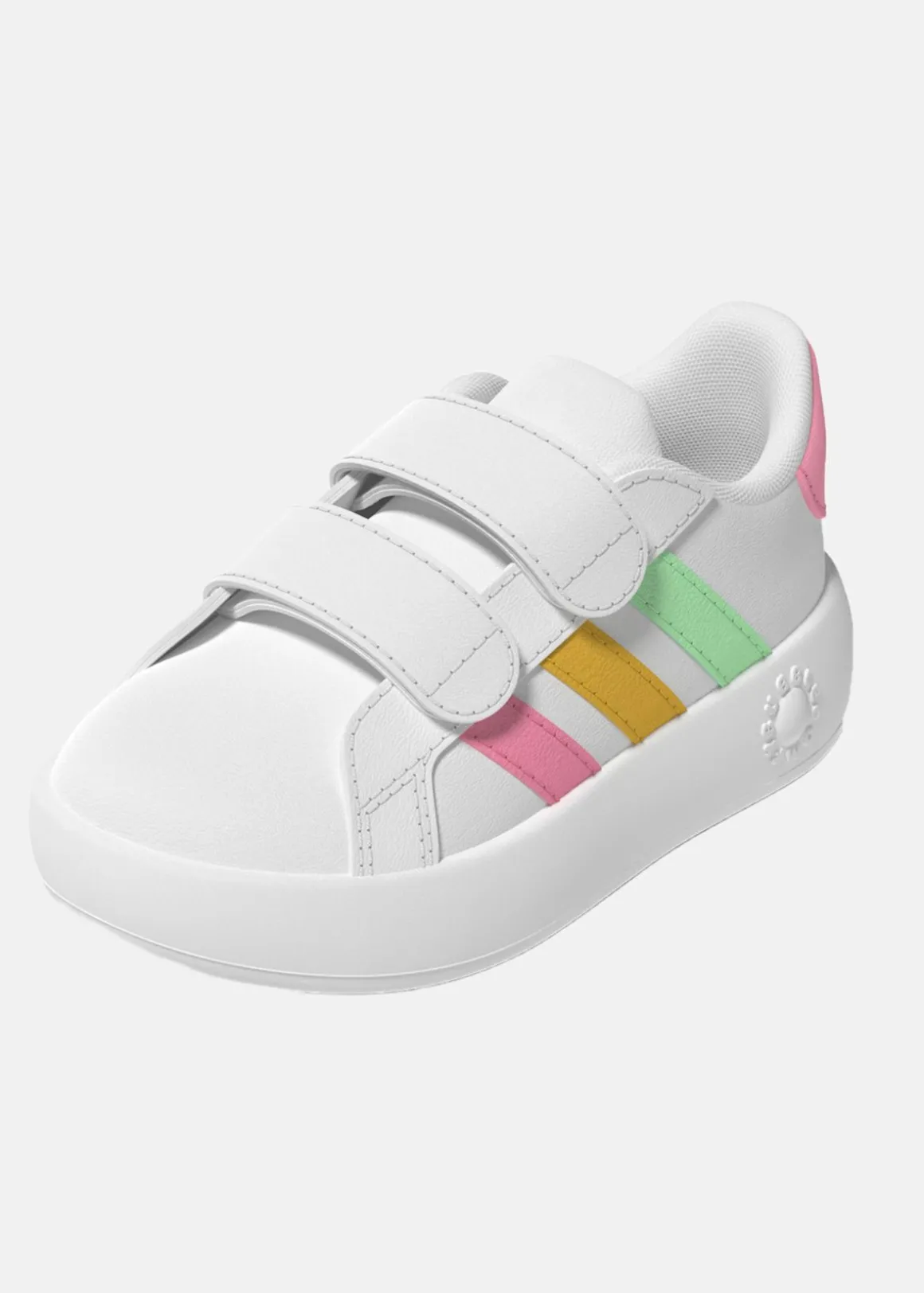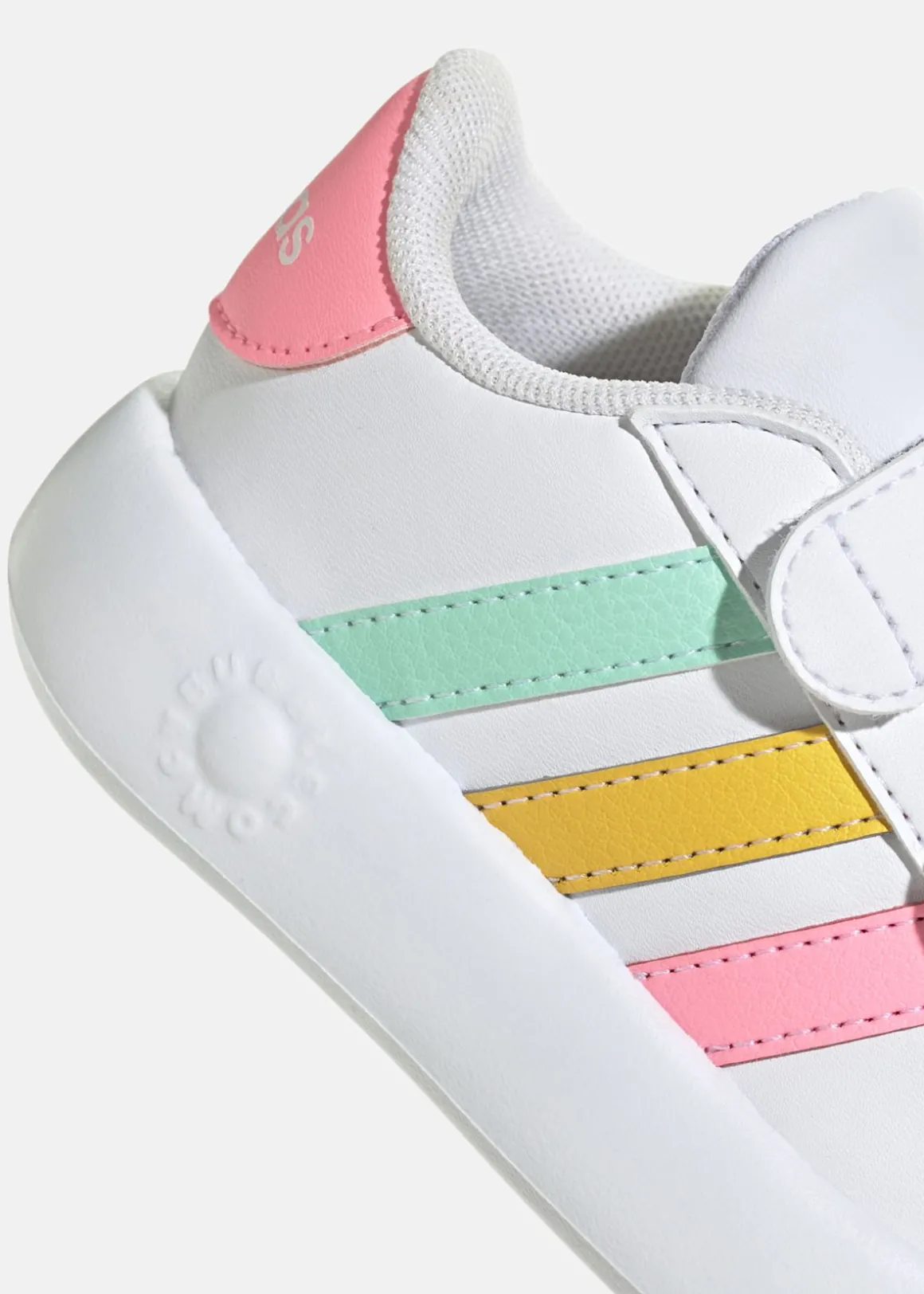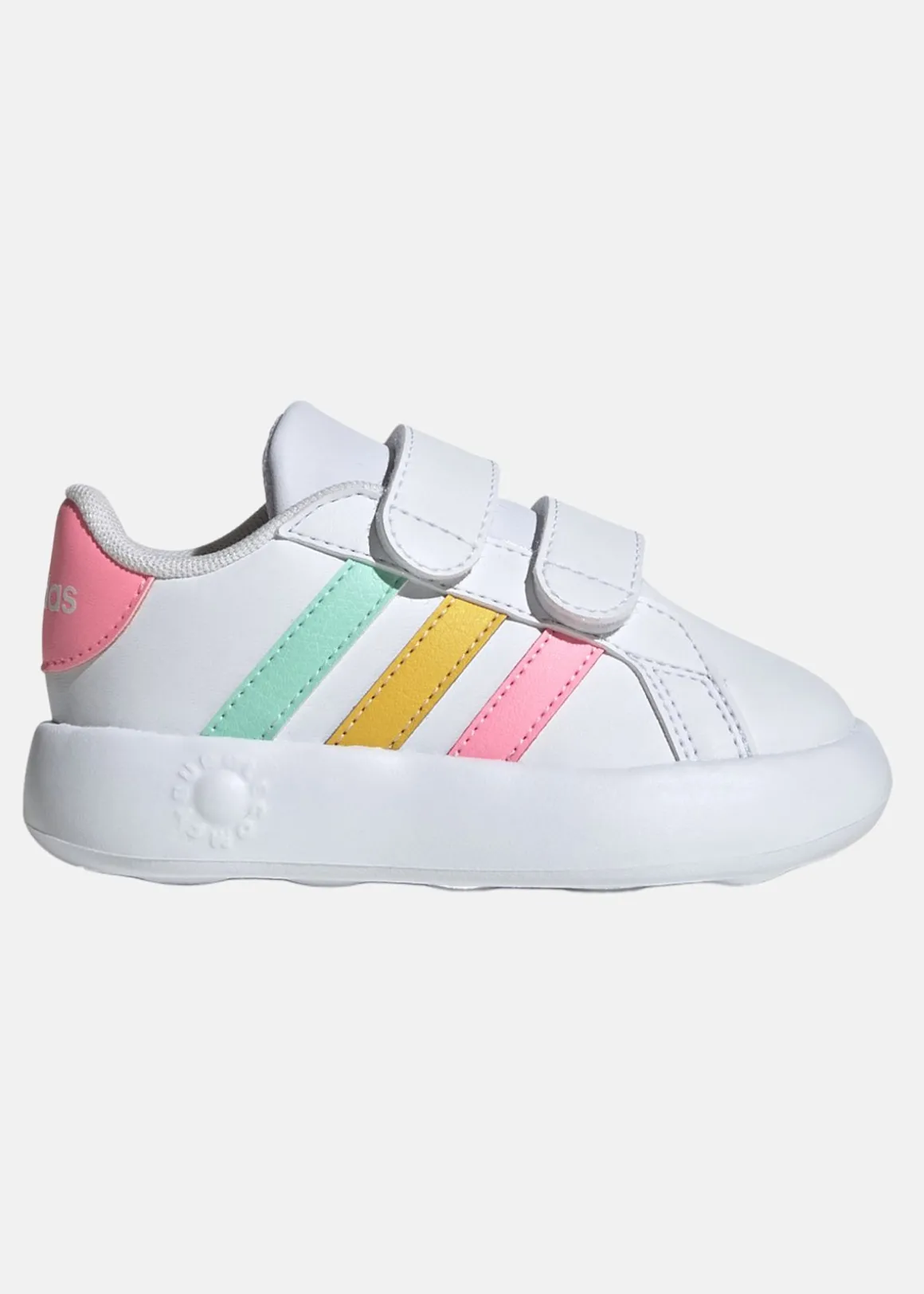 Din lilla älskling kommer att älska dessa söta Grand Court-skor från adidas. Kardborrebanden gör dem lätta att sätta på och ta av, medan den bubbliga EVA-sulan ger en bekväm och stödjande känsla för små, växande fötter. Med lekfulla färger och de ikoniska 3-Stripes-ränderna, inspirerar dessa skor till aktivitet och utforskning, oavsett om barnet kryper eller tar sina första steg.