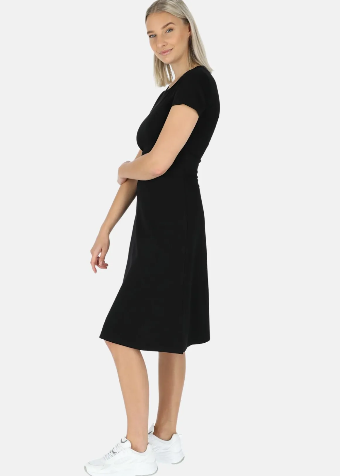 Hampton Dress W från Seaside – den perfekta klänningen för en avslappnad men ändå sofistikerad look. Den här klänningen har en elegant draperad design och ett mjukt, stretchigt material som bekvämt omfamnar kroppen. Med en rundad halsringning, korta ärmar och en smickrande midilängd är den här klänningen perfekt för alla tillfällen. Kombinera den med dina favorittillbehör för en mångsidig look som tar dig från dag till kväll. Uppgradera din garderob med den här klänningen idag!