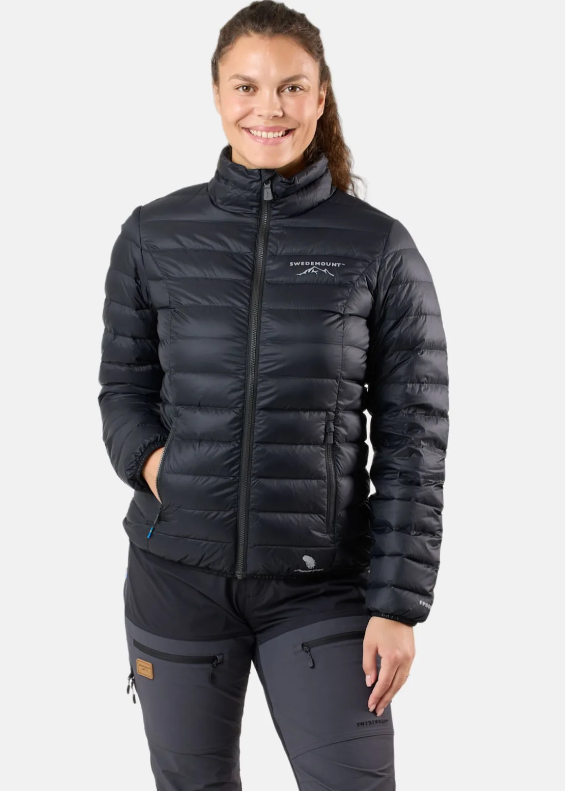 Himalaya Down Jacket W är tillverkad av 100% ripstop nylonväv som är extremt slitstark trots sin lätta vikt. Ripstopsväven är förstärkt med invävda trådar i ett rutmönster, vilket ökar dess hållbarhet och förhindrar att jackan rispas upp vid skador. Tyget har även behandlats med en PFC-fri DWR-behandling för att avvisa vatten. Jackan är isolerad med mycket dun som är RDS-certifierad med en fyllningsgrad på 800. Jackan har YKK Vislon-dragkedjor fram och på fickorna, reflekterande Swedemount-logotyper fram och bak. Med elastiskt kantband vid ärmsluten och nertill på jackan får du en bekväm passform för att inte få in vinden. Dessutom medföljer en praktisk packpåse för enkel transport som även kan användas som huvudkudde på dina resor. Himalaya down Jacket finns både med och utan huva.