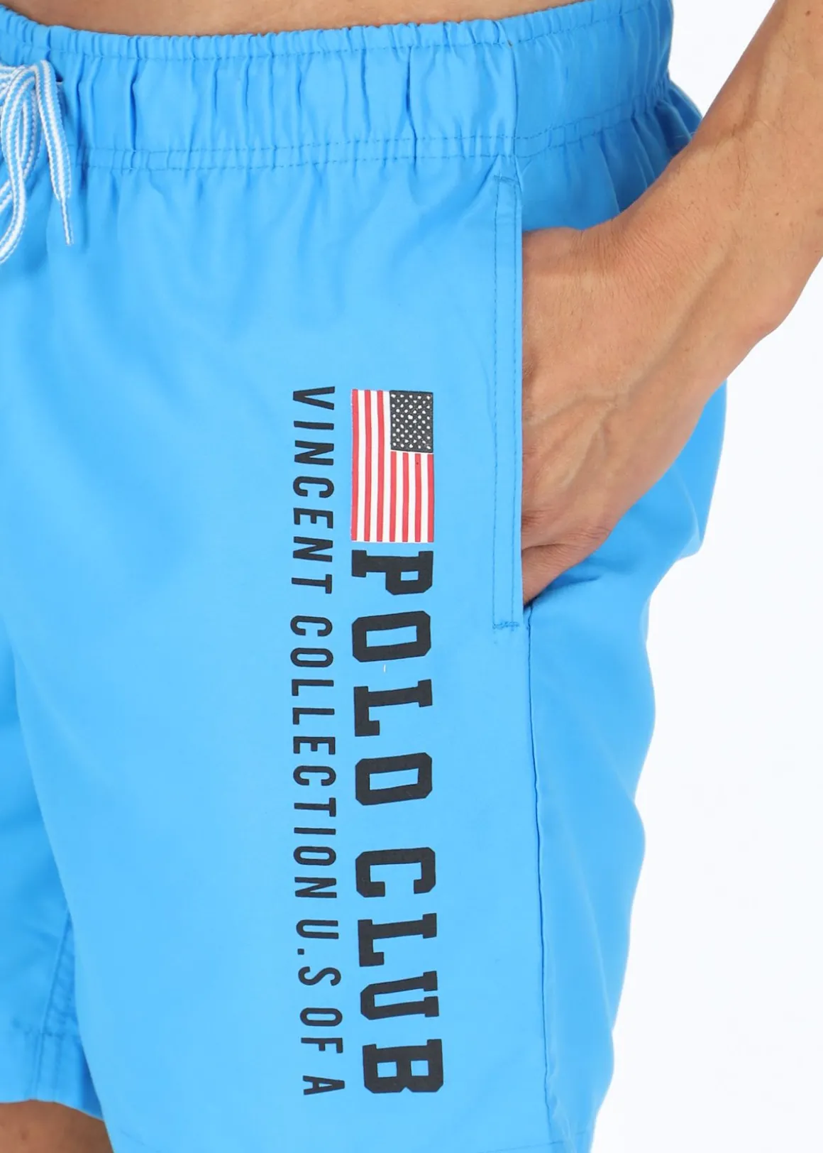 Ett par badshorts från St. Vincent i en stilren och snygg design. Enfärgad grund med tryck på båda benen, två sidofickor med kardborre och en elastisk midja med snörning för enkla anpassningsmöjligheter. Passa på att införskaffa dig sommarens eller semesterns badshorts!
