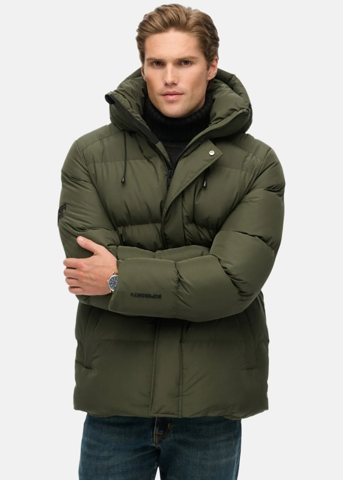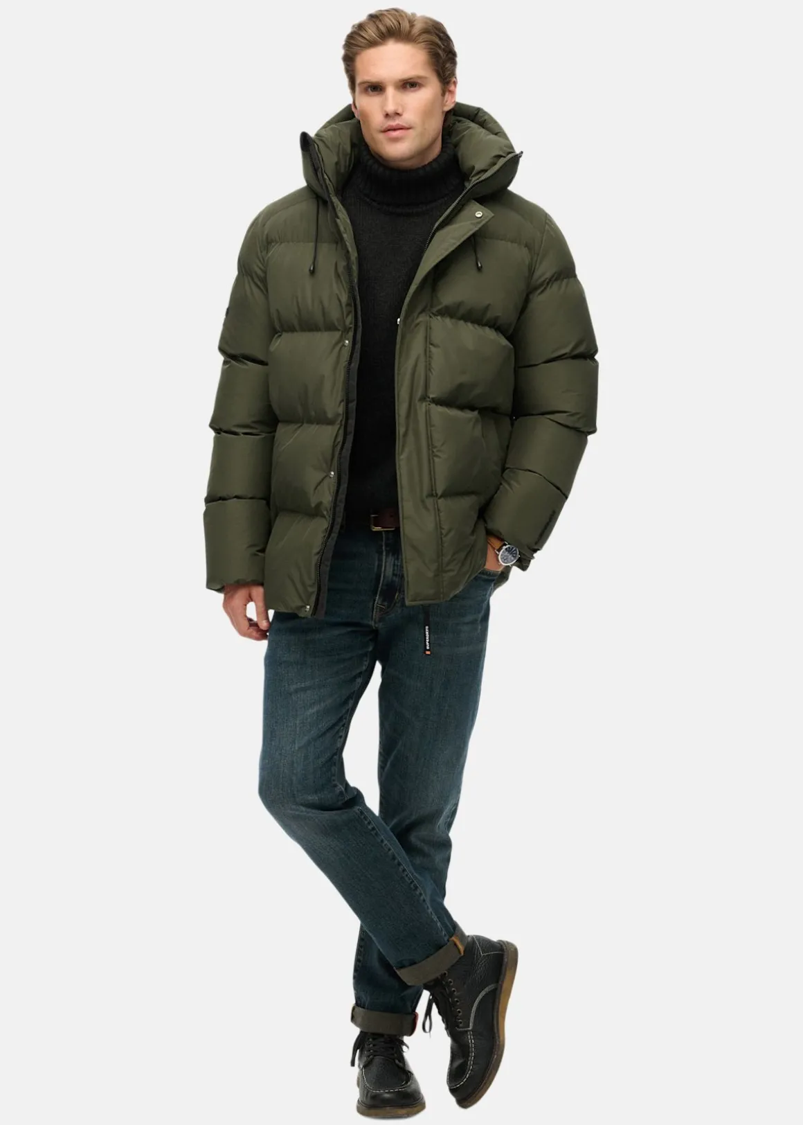 Jackan är sydd i fem sektioner för jämn värmefördelning och har flera genomtänkta detaljer: justerbar huva, muddar med tumhål och gott om fickor. Stängs med dragkedja och tryckknappar för extra skydd mot vind och kyla.
