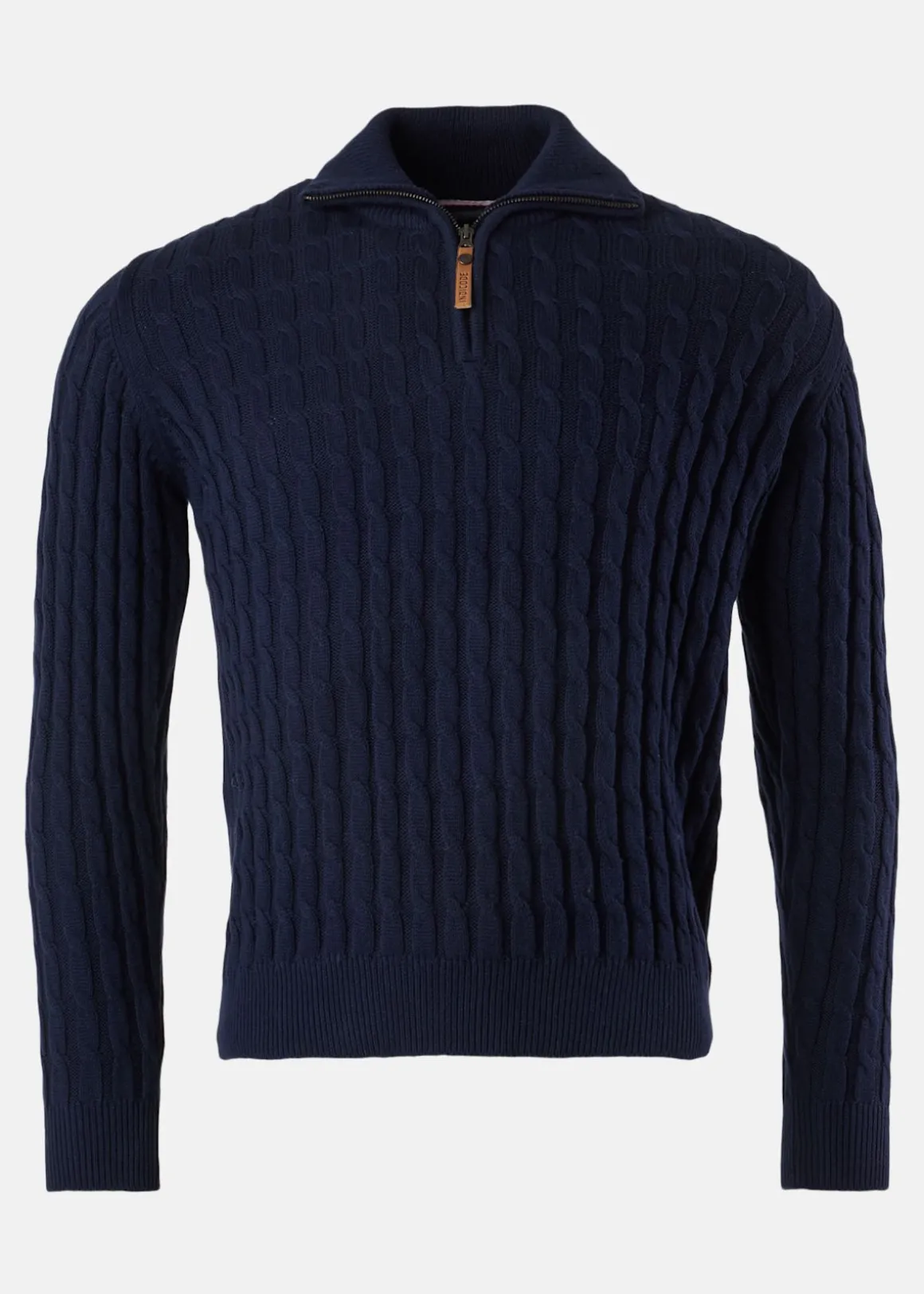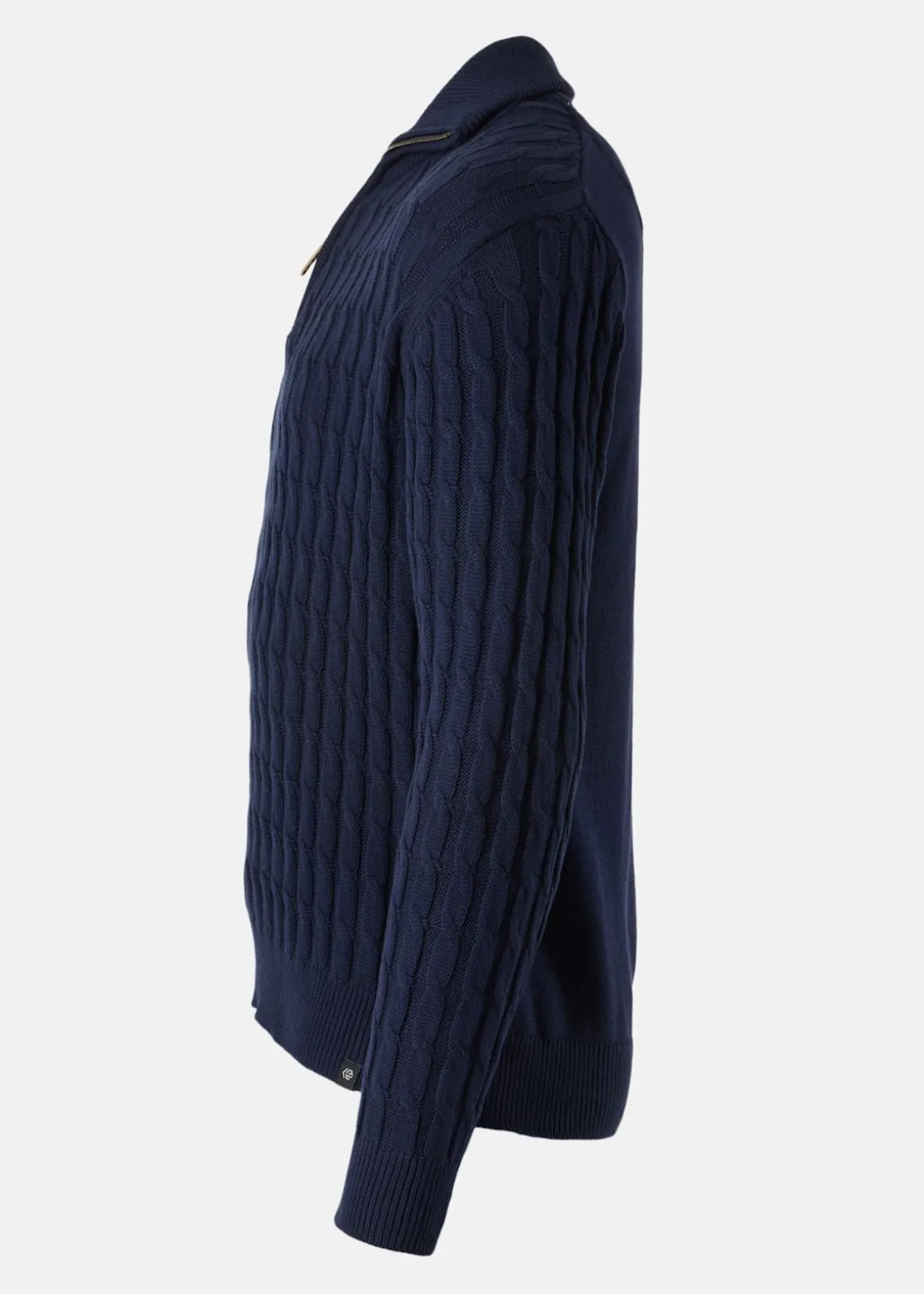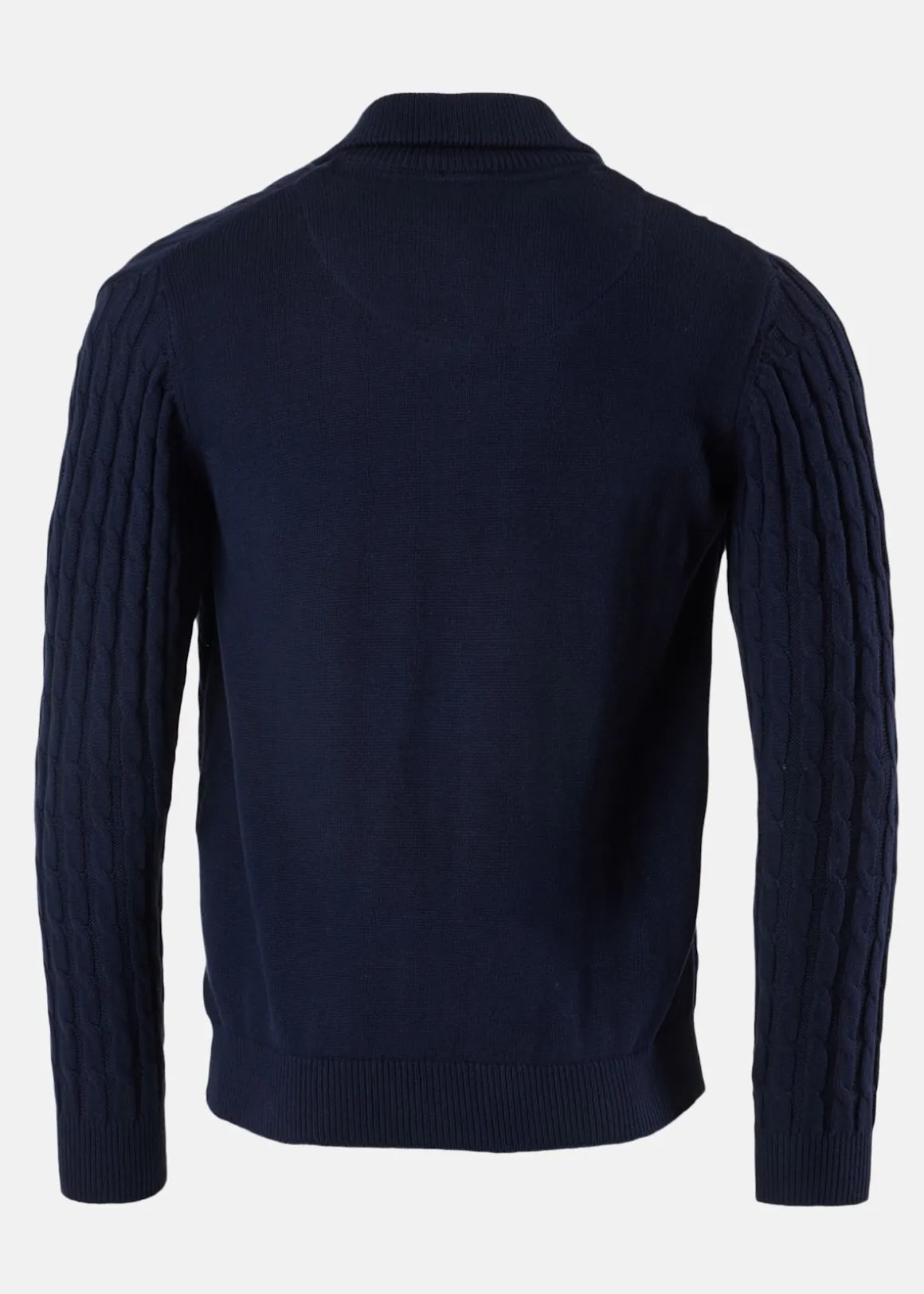 Det mjuka, sammetslika materialet tillsammans med kabelstickat mönster ger både komfort och ett högkvalitativt intryck. Dragkedjan i halsen gör att du kan justera värmen efter väder, medan den elastiska nederkanten håller kylan ute. En tidlös design som håller i många säsonger.