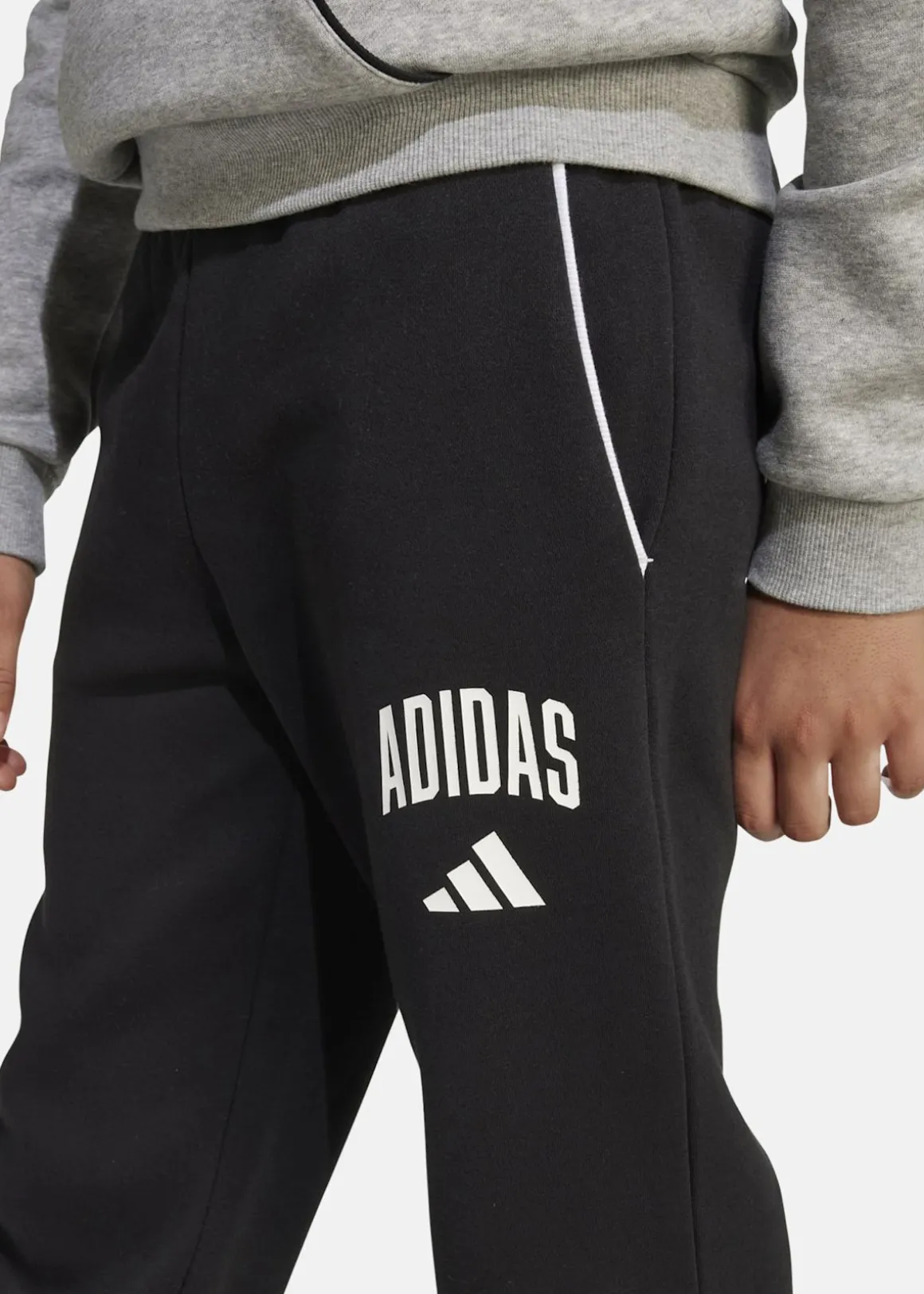 Dessa träningsbyxor för juniorer från adidas kombinerar komfort med en koppling till sportens värld. Den collegeinspirerade logotypen hedrar varumärkets rika historia inom sport. Tillverkade av mjuk fleece med praktiska sidofickor och stilfulla kontrasterande kantband, är de perfekta för både avslappning och aktivitet. Materialet består av 55% bomull, 36% återvunnen polyester och 9% viskos, vilket ger en hållbar och bekväm känsla.