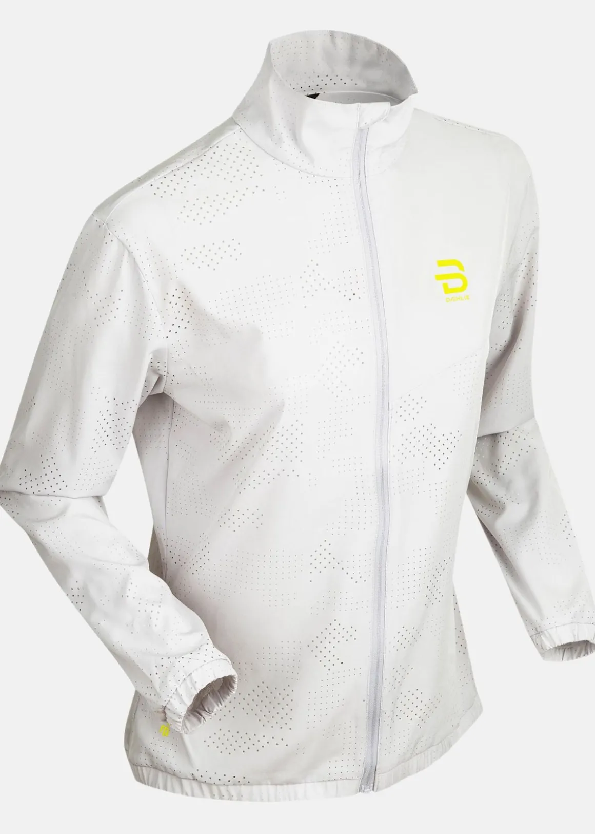 Löparjacka med en hög krage med hakskydd och dragkedjestängning. Ficka baktill och minimal volym för enkel förvaring. Fukttransporterande material och skön passform för användning vid löpning, träning och vardagsliv.