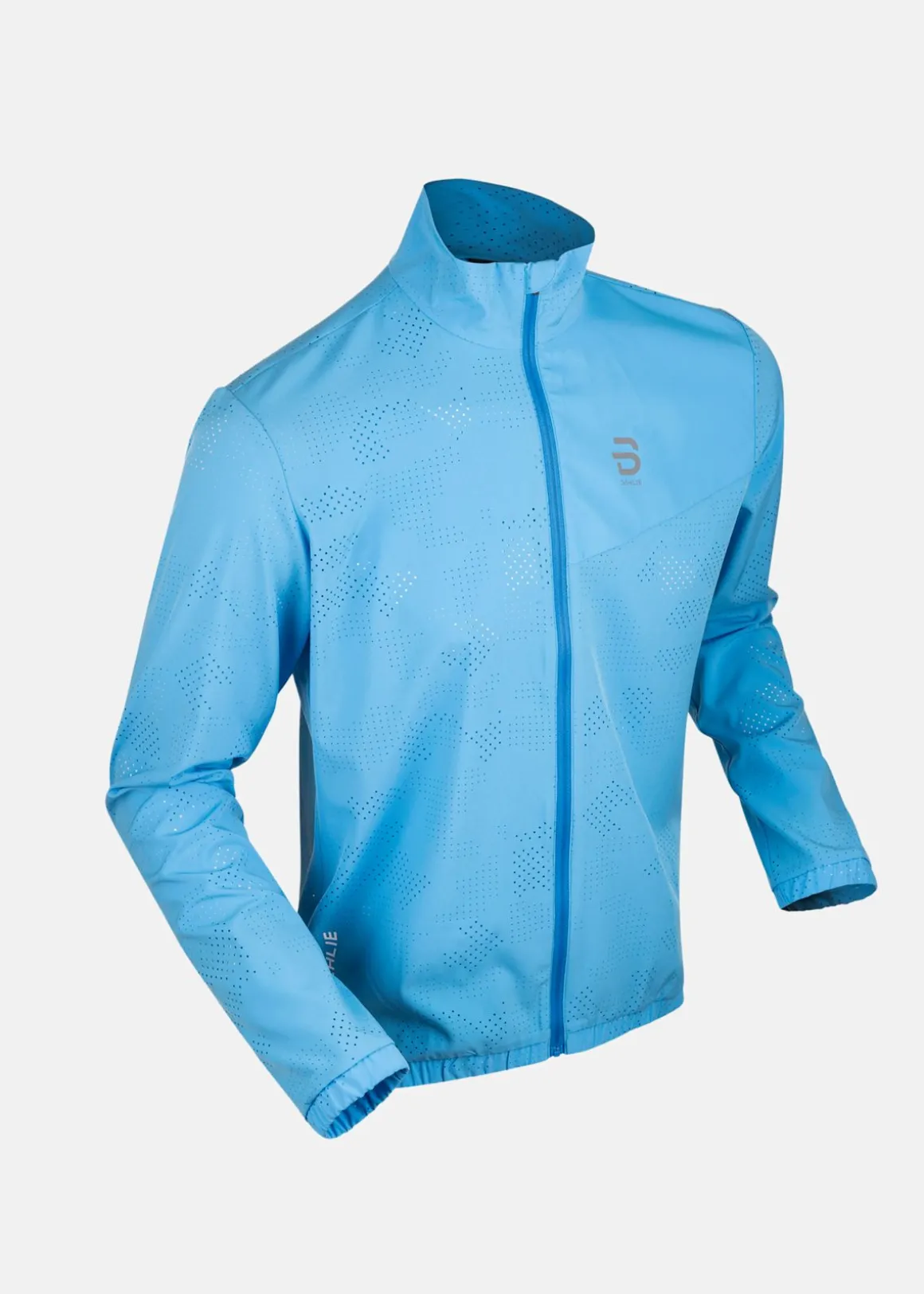 Löparjacka med en hög krage med hakskydd och dragkedjestängning. Ficka baktill och minimal volym för enkel förvaring. Fukttransporterande material och skön passform för användning vid löpning, träning och vardagsliv.