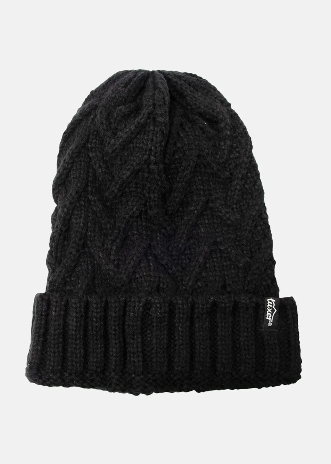Klassisk stickad mössa från Tuxer. Mössan har en uppvikt kant och ett isolerande material.