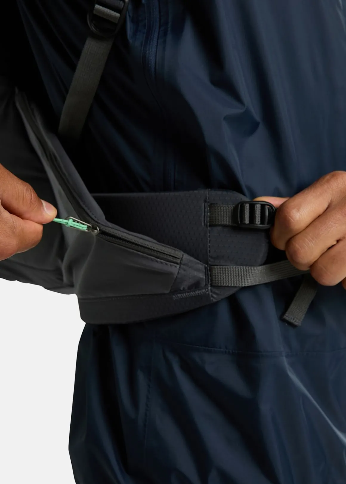 - Elastiska fickor vid höften med dragkedja