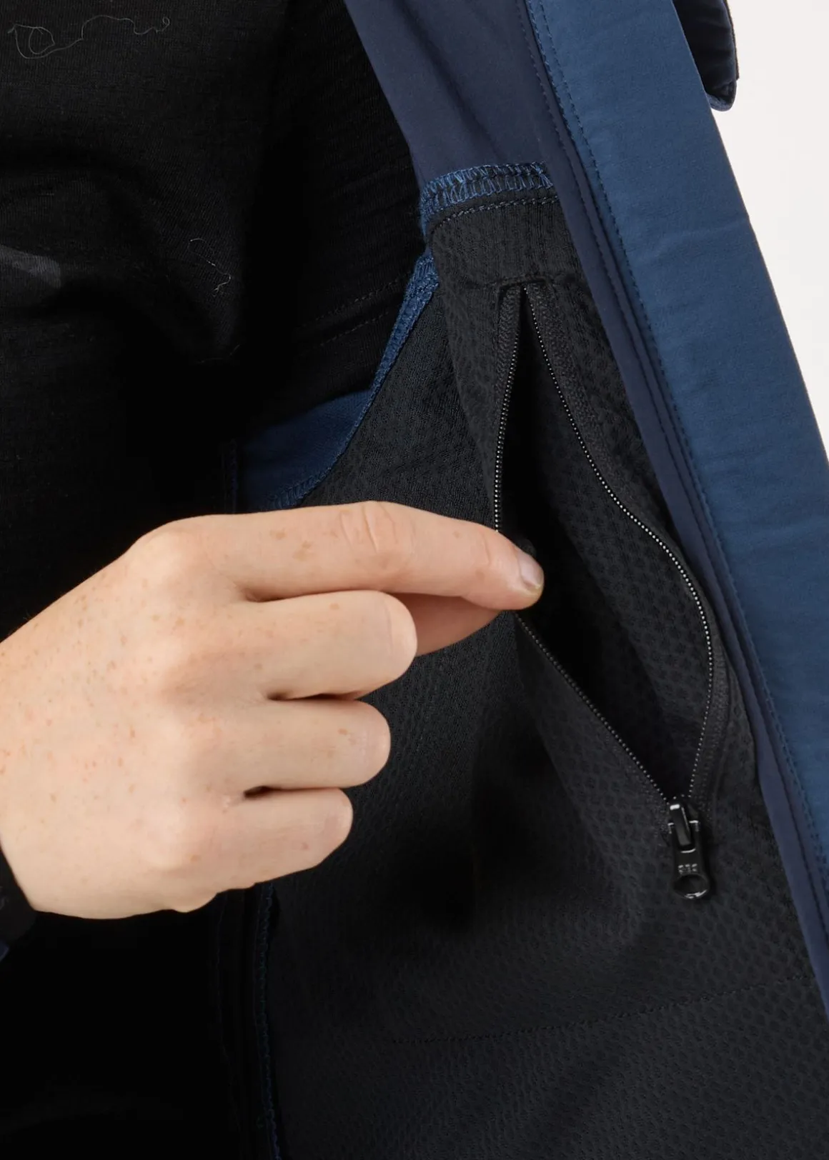 - Ventilationshål vid armhålorna med stängningar med dragkedja