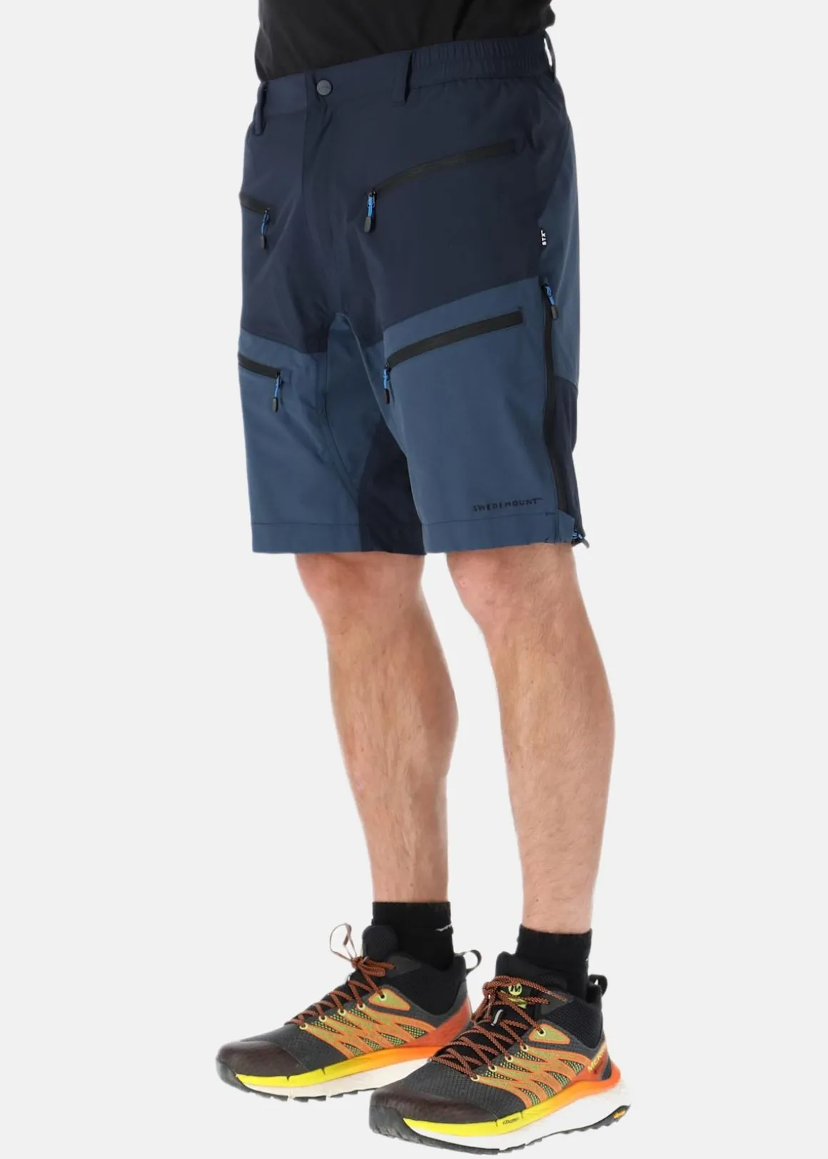 Känn friheten och komforten med Lofoten Stretch Shorts från Swedemount. Dessa shorts är tillverkade med det innovativa STX-materialet, som gör dem vind- och vattenavvisande samt ger utmärkt andningsförmåga och fukttransport. Här får du all rörelsefrihet du behöver, tack vare fyrvägsstretch och en elastisk midja med bälteshällor. Extra funktioner som praktiska benfickor och ventilation på utsidan av låren gör dessa shorts till det perfekta valet för vandring, camping och fisketurer. Dessutom har de en stilren design som passar lika bra i naturen som till vardags.