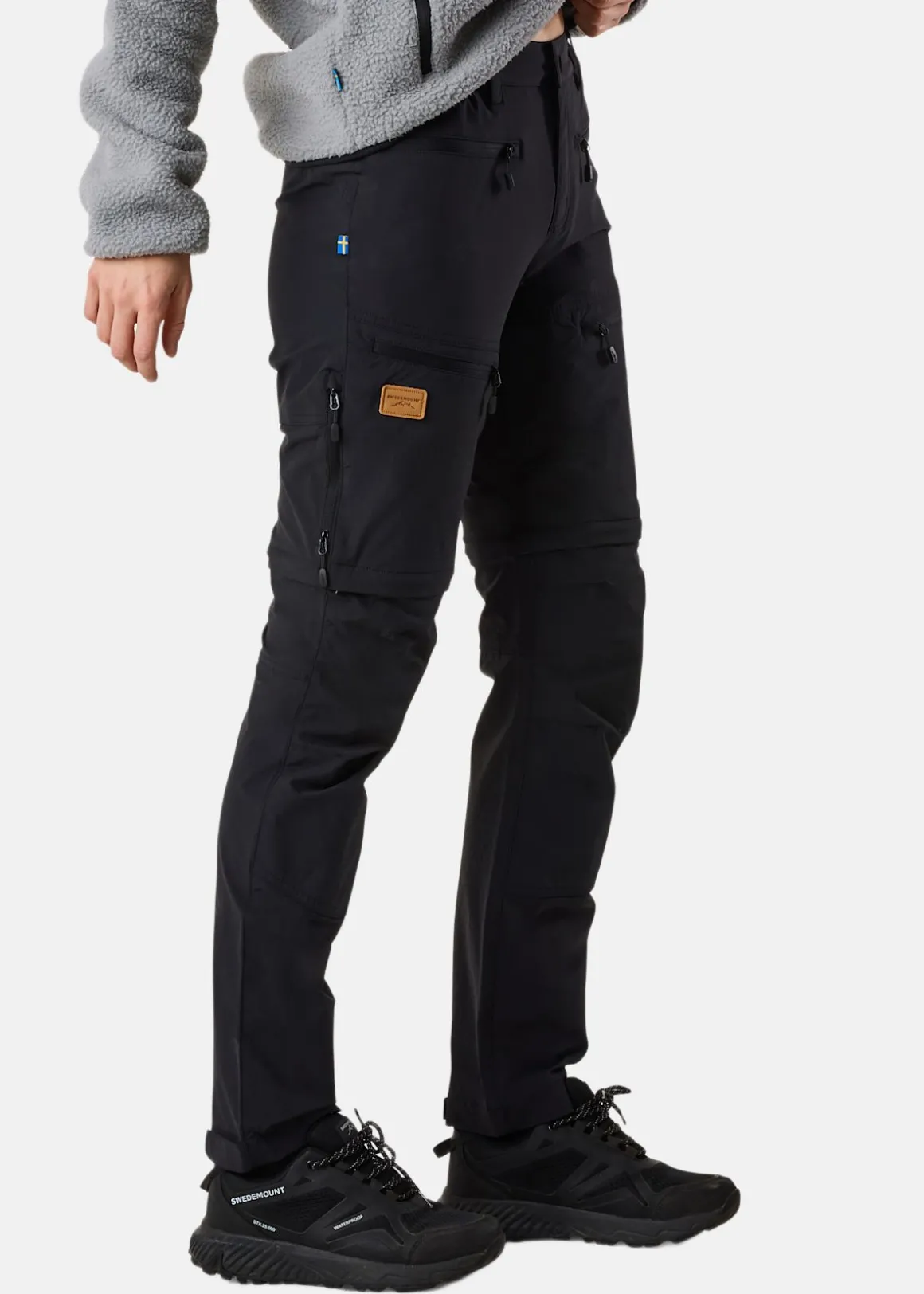 Ett par mycket slittåliga trekkingbyxor från Swedemount i en snygg design. Dessa byxor är perfekt för dig som ofta vandrar, campar, fiskar eller också för dig som söker ett par tåliga vardagsbyxor. Med hjälp av dragkedja så kan du enkelt göra om byxorna till shorts när vädret slår om. STX- material som gör byxorna både vind- och vattenavvisande, en god andningsförmåga och egenskapen att effektivt transportera bort fukt till utsidan av plagget. Fyrvägsstretch, midjeresår och bälteshällor för individuell anpassning. Kroppsnära passform för en optimal rörelsefrihet. Fyra fickor fram på som alla förseglas med dragkedja, justerbara benslut med kardborreband och dragkedja längs sidorna ned till bensluten för ökad ventialtion. Förstärkta partier på knän och stuss som är mest utsatta för väder och slitage.