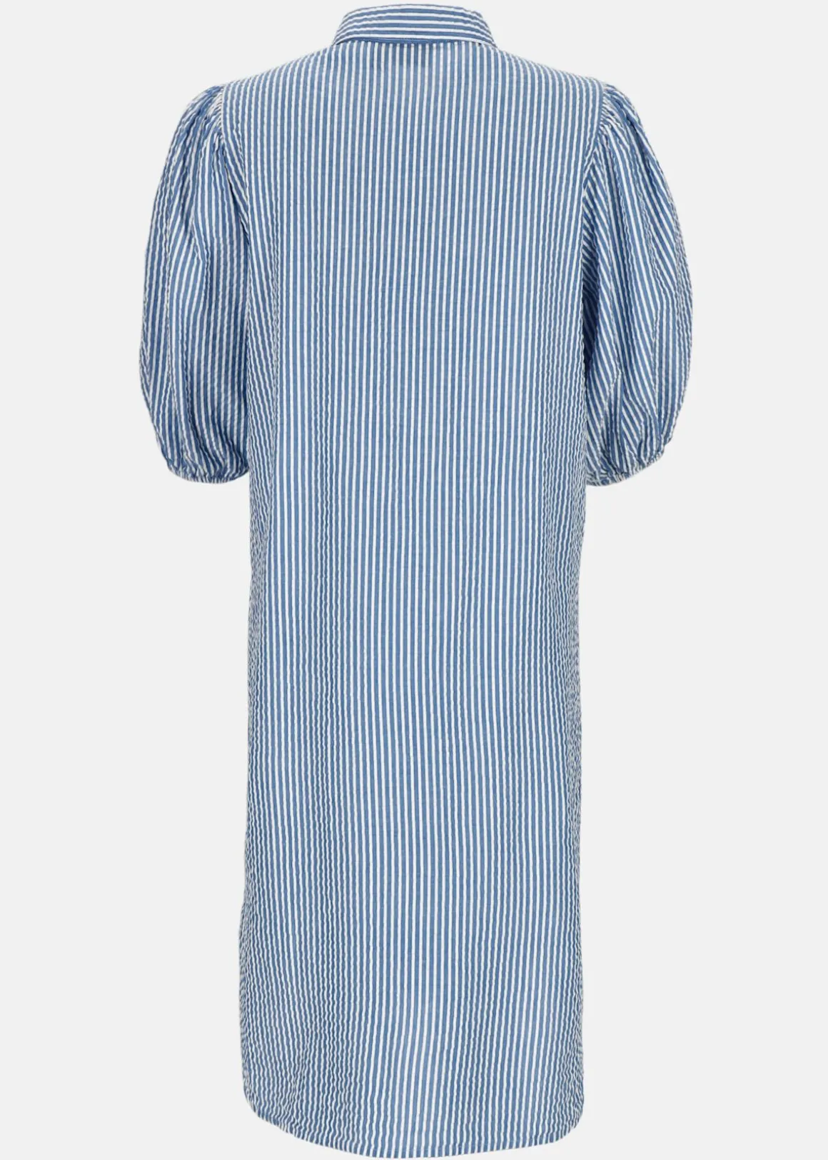 Denna skjortklänning från Seaside är tillverkad i 100% bomull och erbjuder en lätt och luftig känsla, perfekt för varma sommardagar. Med sin bäckebölja struktur ger den en stilren och avslappnad look. Klänningen har en klassisk krage och är genomknäppt framtill, vilket gör den mångsidig; bär den som en klänning eller öppen över en topp. Ärmarna avslutas med resår och den rundade nederkanten är något längre bak, vilket ger en smickrande silhuett.