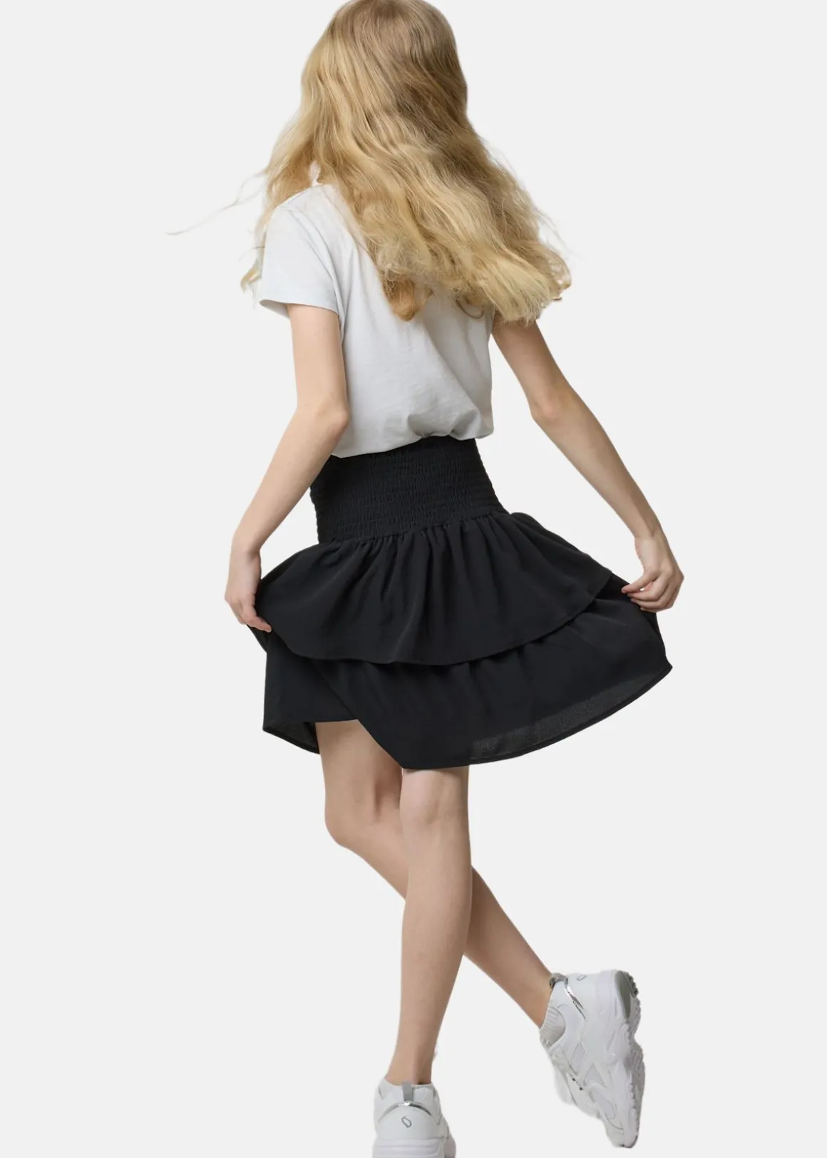 Kort kjol från Seaside i ett tunt, luftigt tyg med stretchig midja. Volangen nedtill gör att den får ett fint fall, perfekt för alla tillfällen!