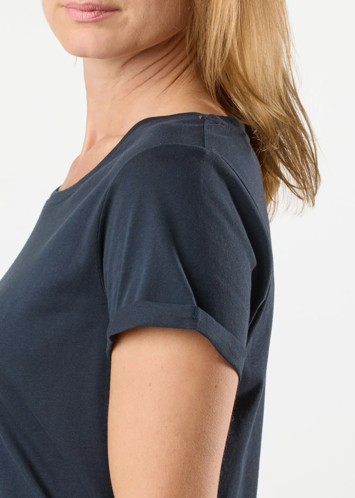 - Korta, uppvikta ärmar
