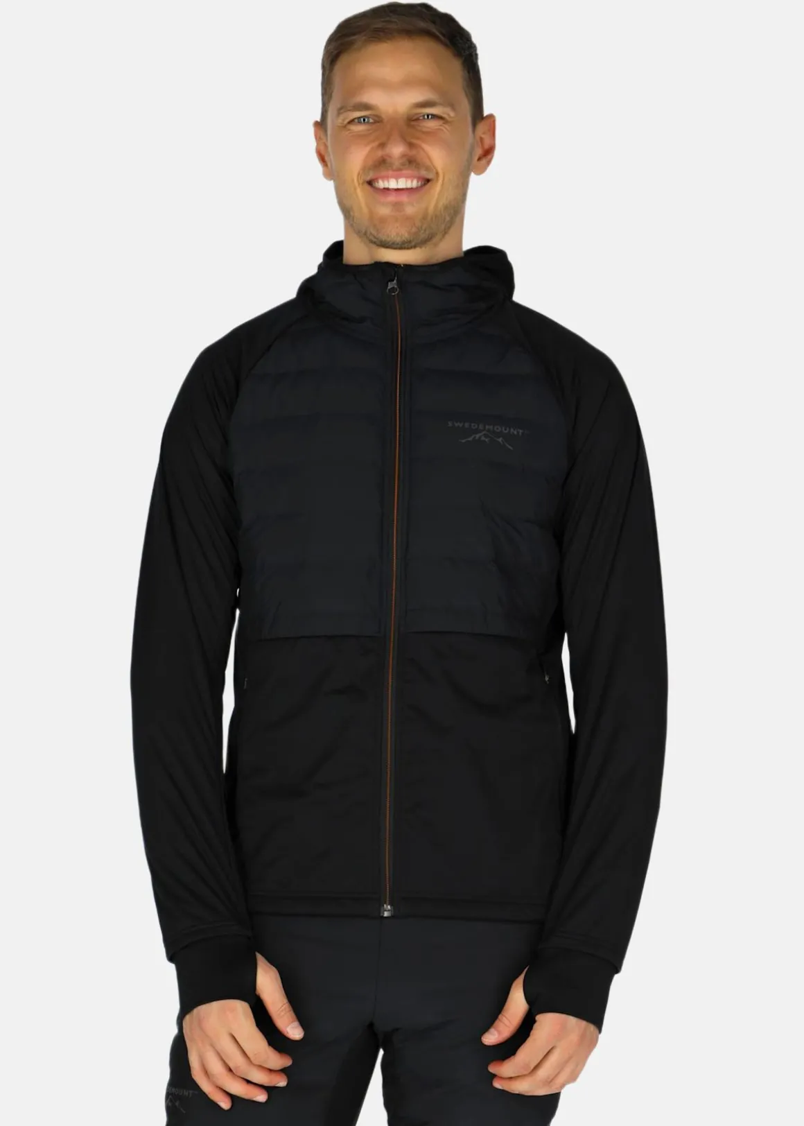 Nordic Hybrid Hooded är en hybridjacka från Swedemount. Tillverkad i vind- och vattenavvisande material håller den dig torr och skyddad under alla väderförhållanden. Jackans vadderade paneler ger extra värme och komfort, medan det stretchiga materialet ger dig god rörelsefrihet. Med två handfickor med dragkedja och en fast huva är den både praktisk och stilren. Den hellånga dragkedjan gör den enkel att ta på och av, och den höga kragen ger extra skydd mot kyla. Tumhål och justerbar nederfåll gör att du kan anpassa passformen efter dina egna behov. En perfekt jacka i längdspåret!