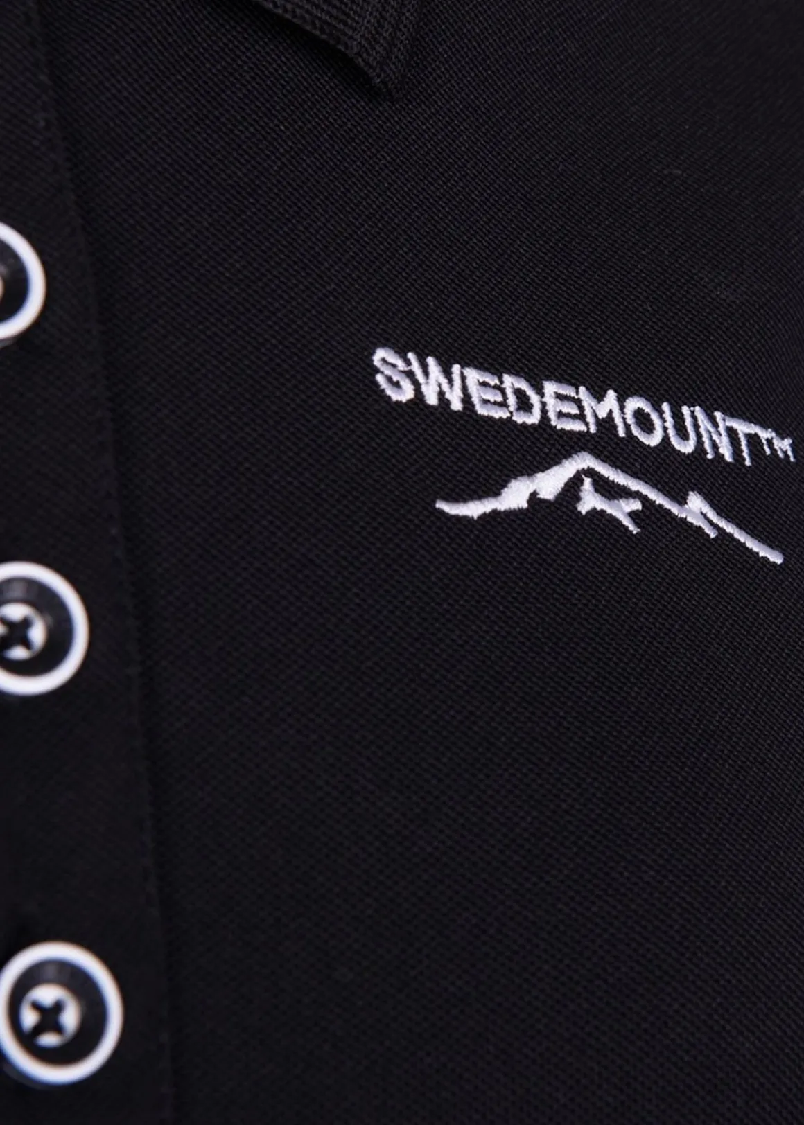 Formsydd pikétröja från Swedemount. Pikétröjan har ett snabbtorkande material med en god andningsförmåga och en knäppt krage med en broderad detalj framtill.