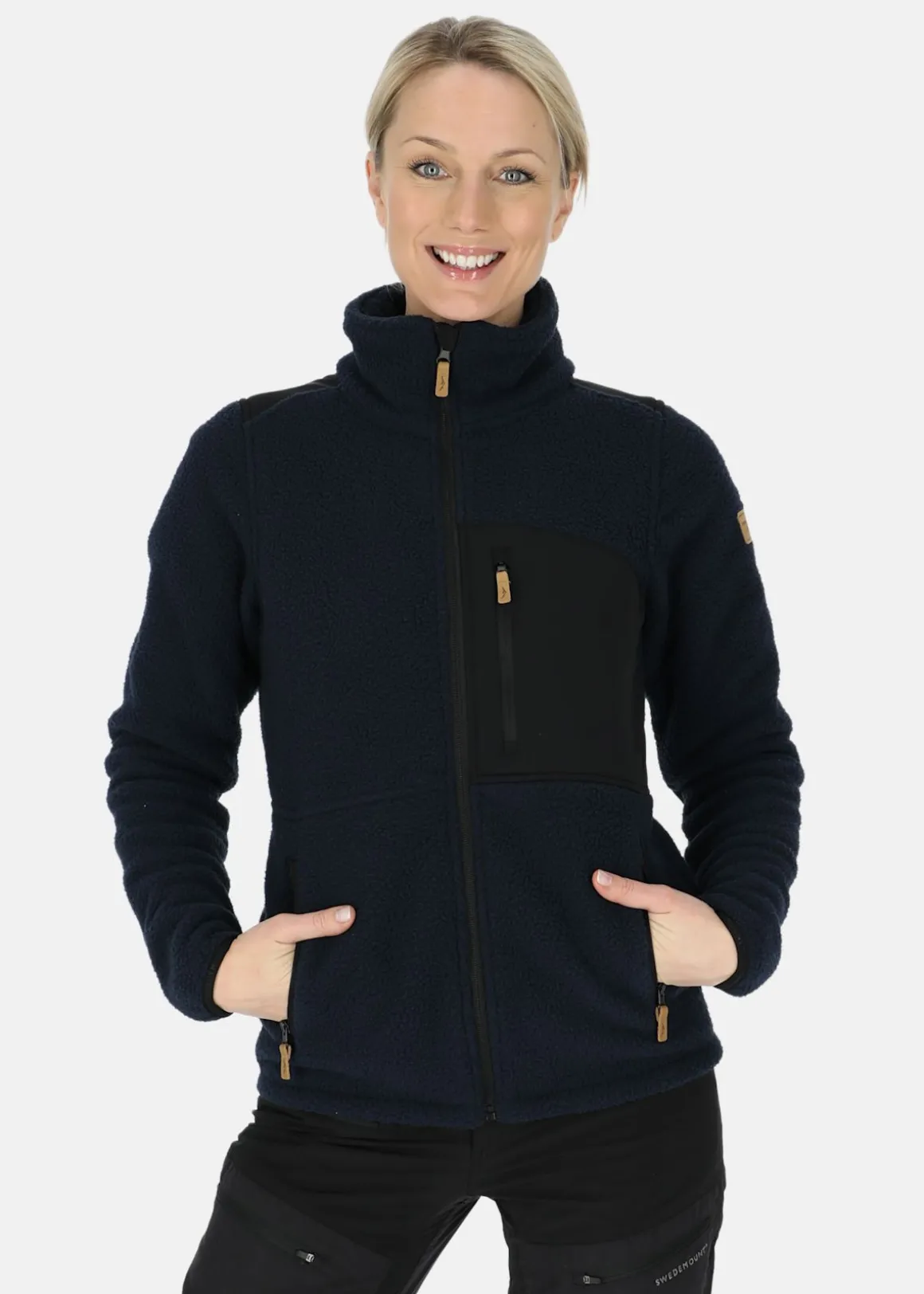Pile jacka från Swedemount i ett mjukt material rakt igenom. Hög krage med hakskydd och hellång dragkedja framtill. Tre praktiska fickor med dragkedja för det nödvändigaste. En modern klassiker med detaljer i läder och slittåliga armbågsskydd. Var redo för alla tillfällen.