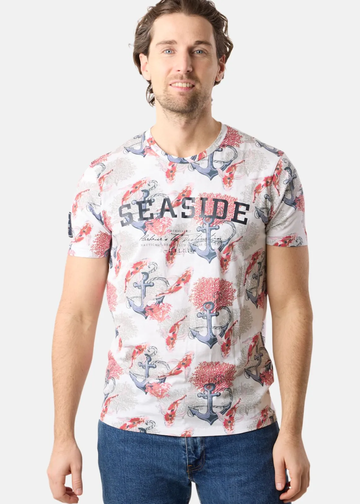 Ocean Tee är en mönstrad t-shirt från Seaside. Tillverkad i organisk bomull som garanterar en mjuk och skön användning. T-shirten har en rund halsringning, ett stort logotryck över bröstet och en logopatch på ena ärmen. Passar perfekt för vardaglig användning och ger en riktig sommarkänsla!