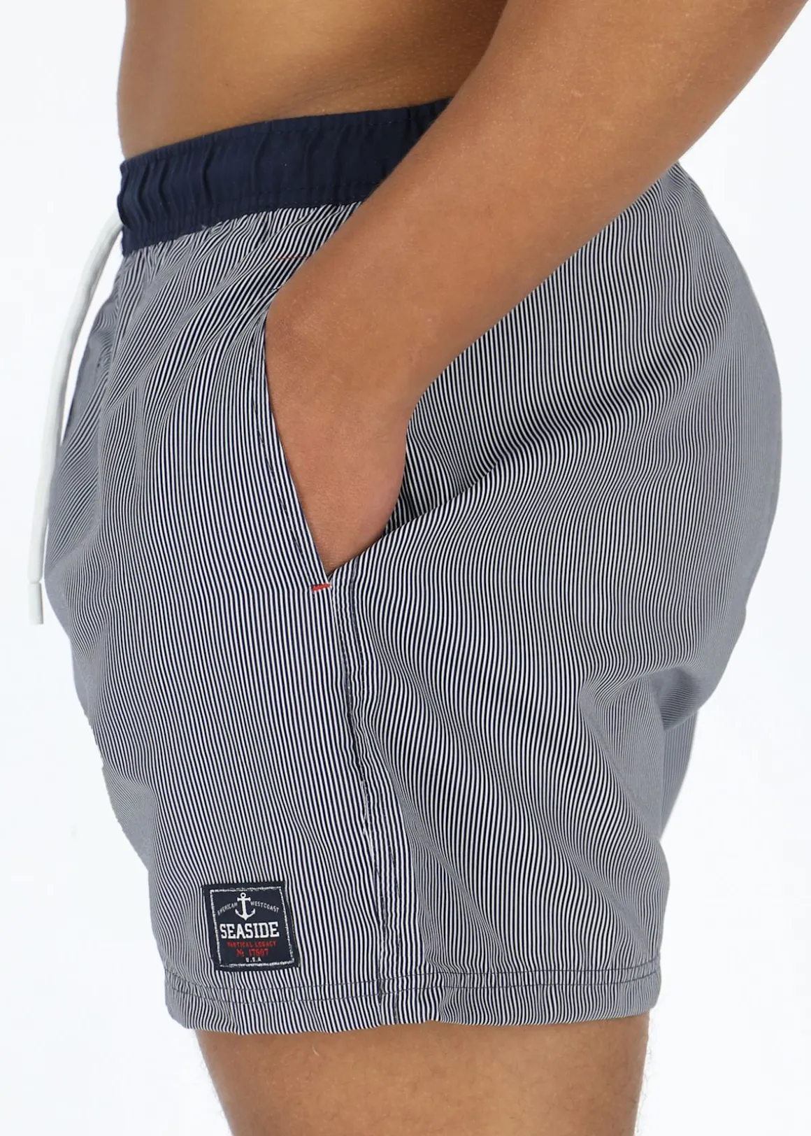 Pacific Beachshorts från Seaside är tillverkade i ett snabbtorkande och lätt material med normal passform. Tack vare den justerbara och stretchiga midjan så är det enkelt att anpassa passformen efter dina önskemål. Praktisk bakficka med kardborrestängning och innerbyxor i meshtyg. Dessa badbyxorna är perfekta för en dag vid stranden eller poolen.