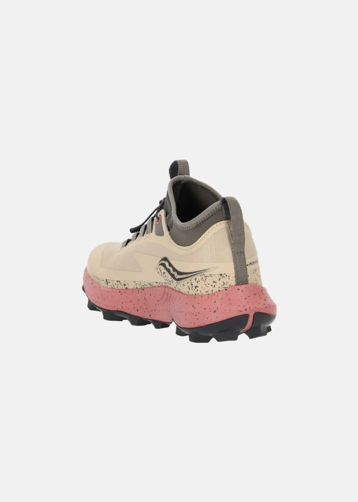 Neutrala terränglöpningsskor från Saucony med en slitstark och sömlös ovandel i mesh med skön passform. Praktisk snabbsnörning för att enkelt ta av och på skorna samt damasker för ökat skydd mot att smuts och stenar skall komma ner i skon under turen. Skorna har en slitstark yttersula med optimalt grepp på mjuka och ojämna underlag och ROCKPLATE för skydd mot genomtramp. Perfekt för trailrunning eller som en lättare vandringssko.