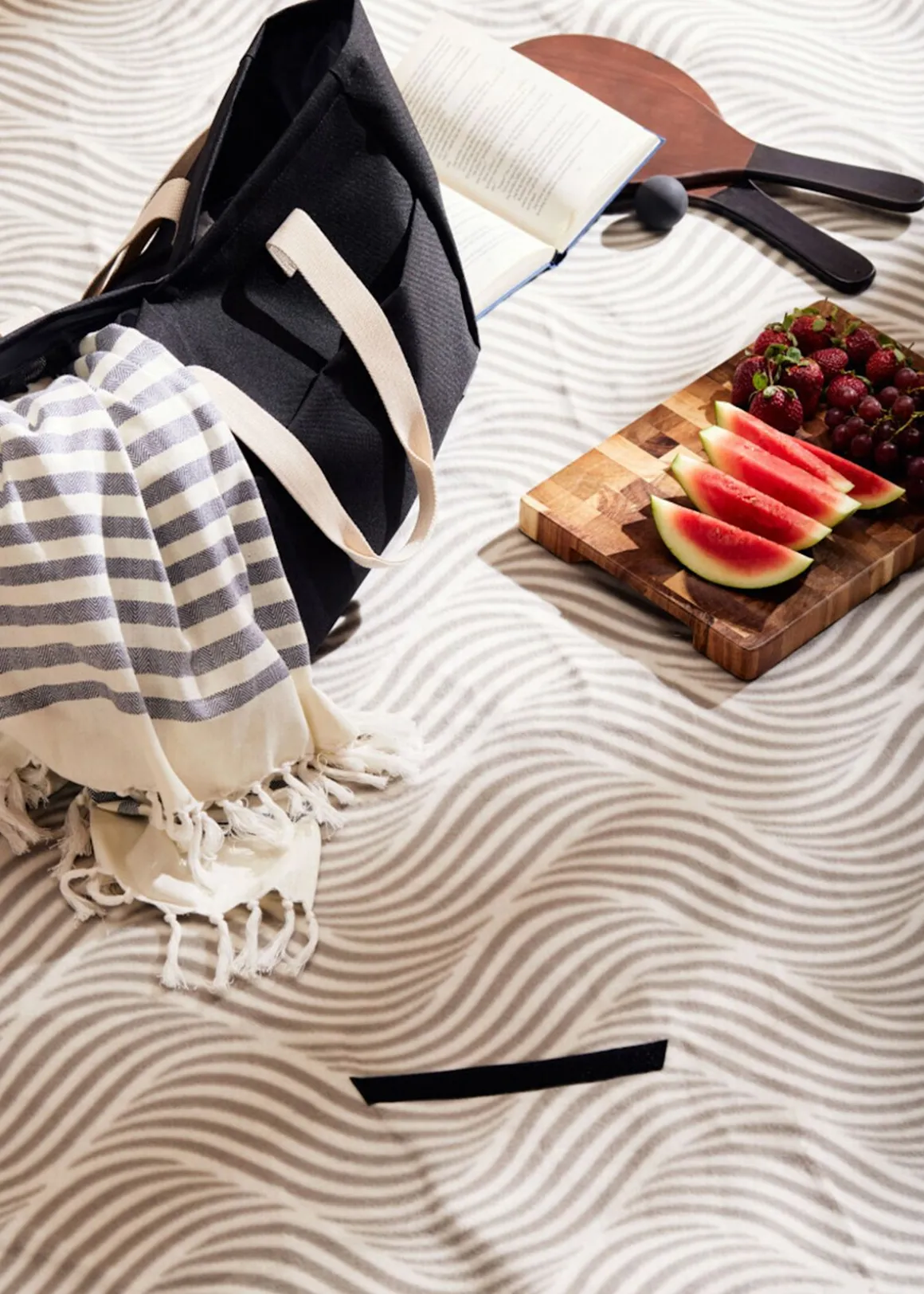Picknickpläden är tillverkad av 100% återvunna PET-flaskor och har en mjuk ovansida i fleece. Baksidan är vattenavvisande tack vare PEVA-materialet, vilket gör den idealisk för utomhusbruk. Pläden kan enkelt vikas ihop och fästas med kardborreband, och det praktiska handtaget gör den lätt att bära. Detaljer i bomullscanvas ger en stilren finish.
