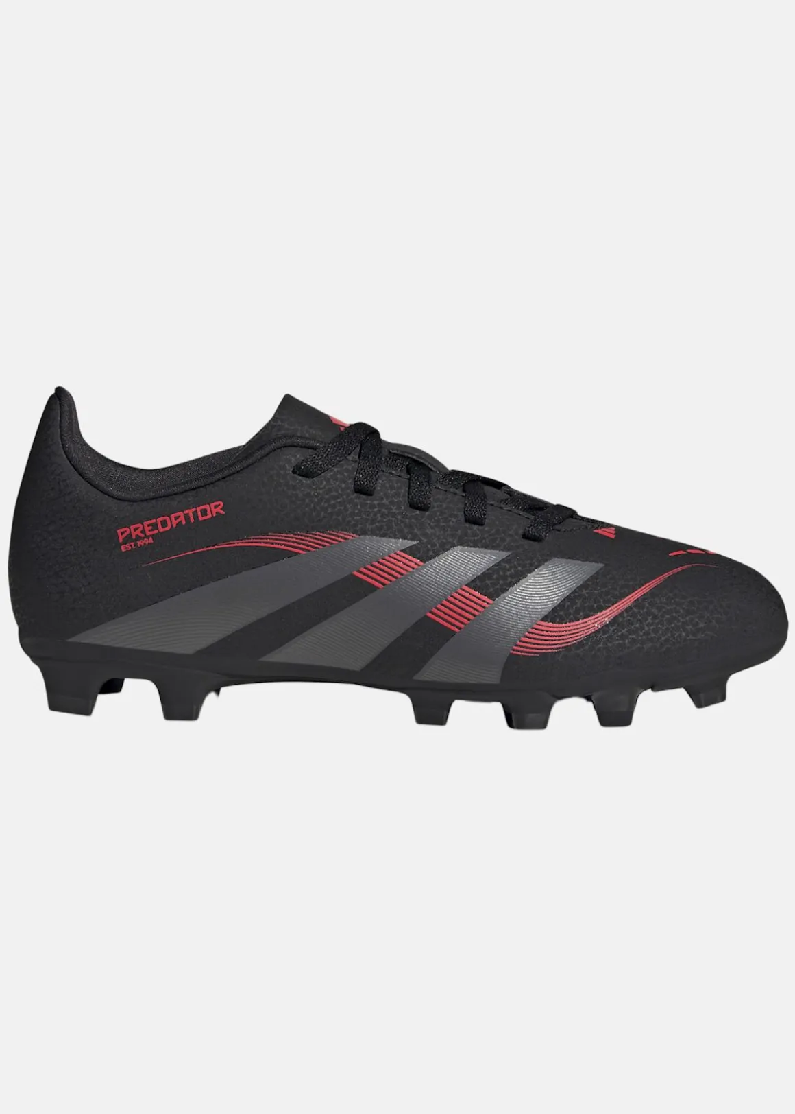 Predator Club-fotbollsskor för juniorer erbjuder en kombination av komfort och prestanda. Med en syntetisk ovandel och mjukt textilfoder, ger de en bekväm passform. Yttersulan är designad för att ge precision på både fasta underlag och konstgräs. Skorna innehåller minst 20 % återvunnet material, vilket bidrar till att minska avfall och miljöpåverkan.