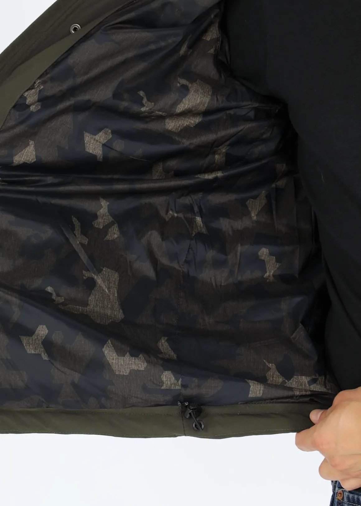 Fyra framfickor och en innerficka. Justerbar huva och nederkant. Slitstark jacka med ett vind- och vattentätt material och normal passform perfekt för friluftslivet och för vardagsbruk.