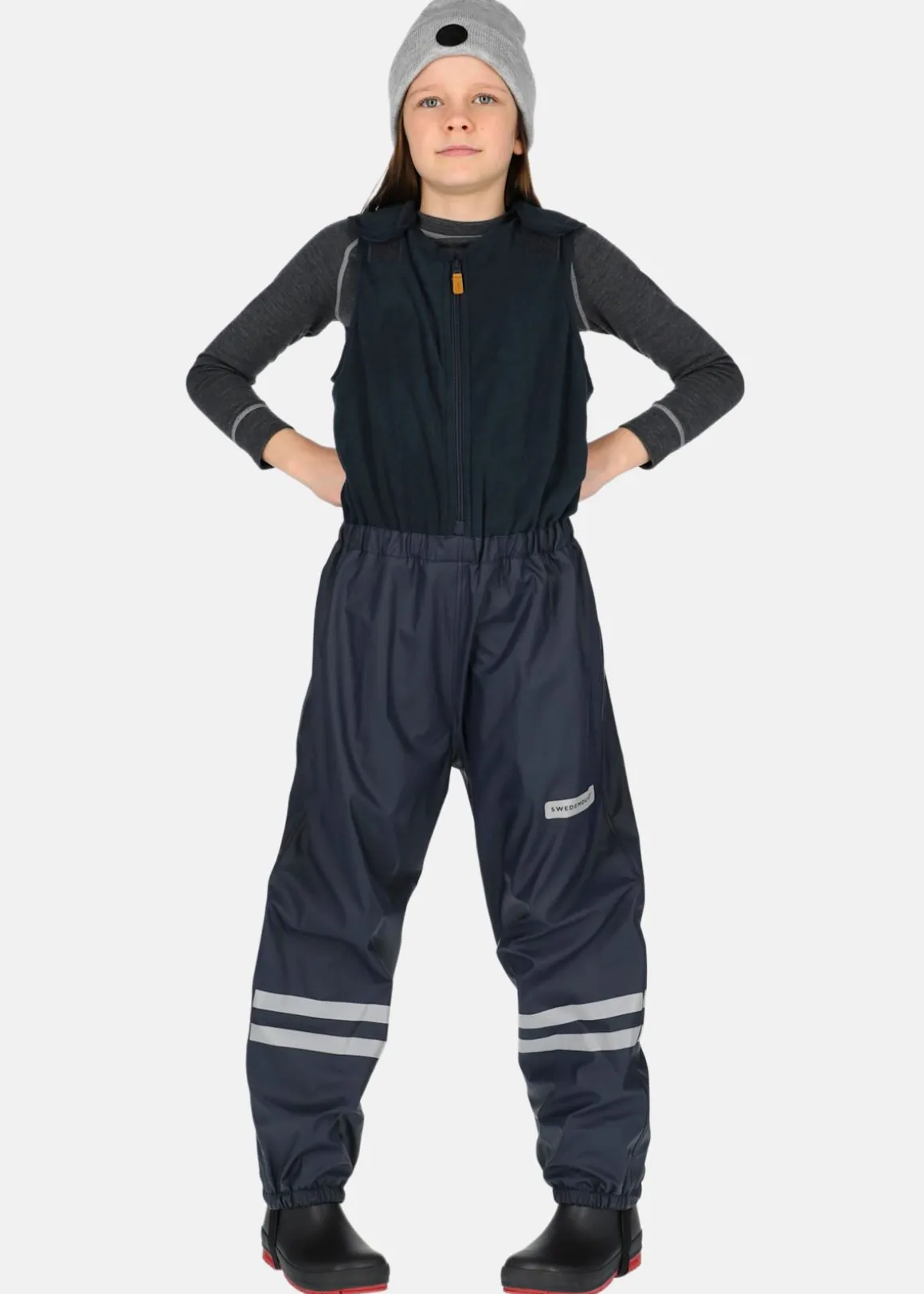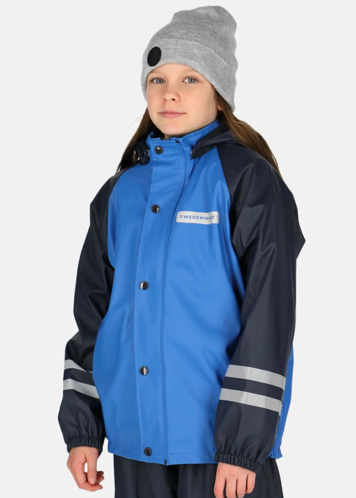 Rusk Fleece Rain Set Jr från Swedemount är det perfekta regnstället för barn som älskar utomhusaktiviteter. Regnstället har en hellång dragkedja med skyddande knappstängning för extra täckning mot regn och en vattenpelare på 8 000mm. Stället är även fodrat för optimal komfort även under de kallare årstiderna. Regnstället har reflekterande detaljer för ökad synlighet och säkerhet och en avtagbar huva för flexibilitet. Hängselbyxorna har justerbara hängslen och praktiska fothällor för att hålla byxorna på plats. Ett regnställ som klarar av det tuffaste vädret!
