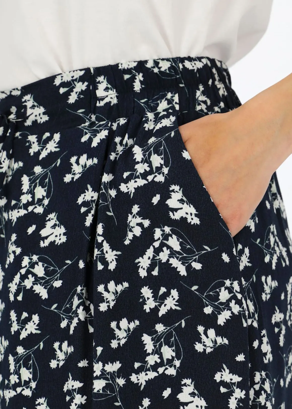 Vacker kjol med två öppna sidofickor och normal passform med resårmidja perfekt för sommaren.