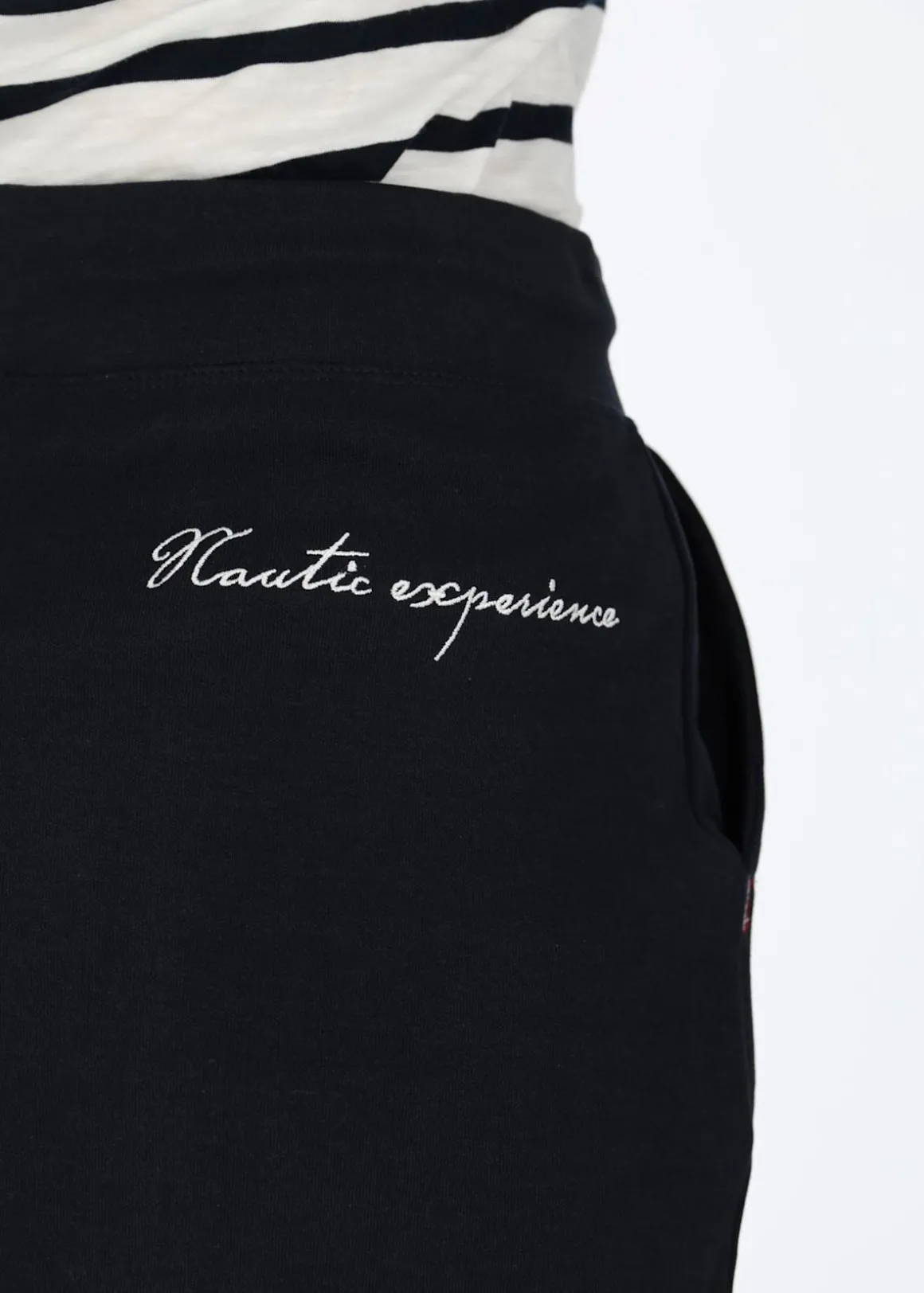 Mjuk kjol från Nautic XPRNC. Kjolen har en midja med med dragsko, två sidofickor och en rundad nederkant och broderade märkesloggor på sidan av låret och baktill.