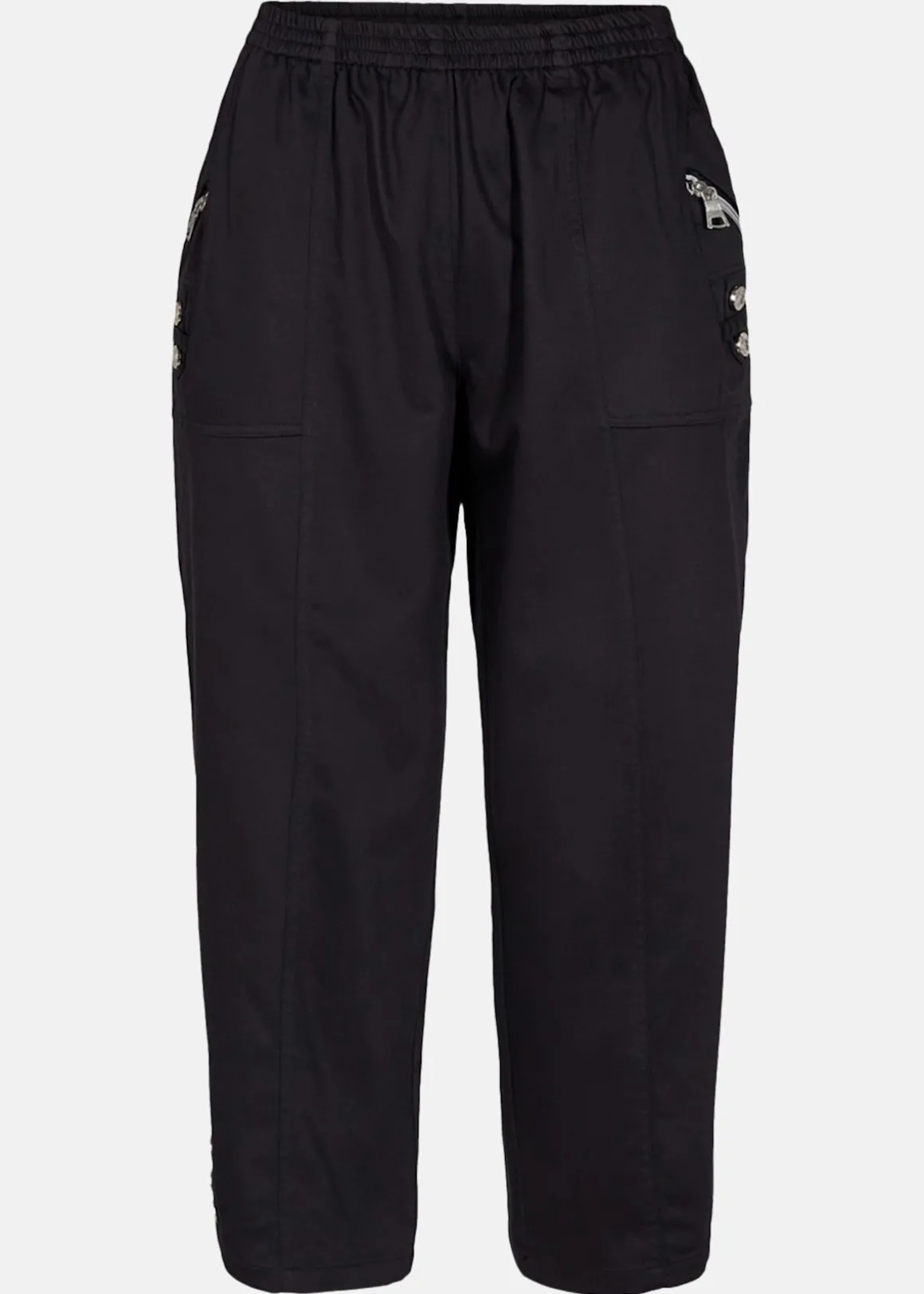SC-Akila 1-C är stiliga byxor tillverkade i en mjuk kvalitet med en stretcheffekt som ger dem extra elasticitet. Deras feminina touch kommer från detaljer som dragkedjor och knappar vid fickorna. Perfekta att matcha med antingen en snygg t-shirt eller en stickad tröja för en outfit som kombinerar stil och komfort.