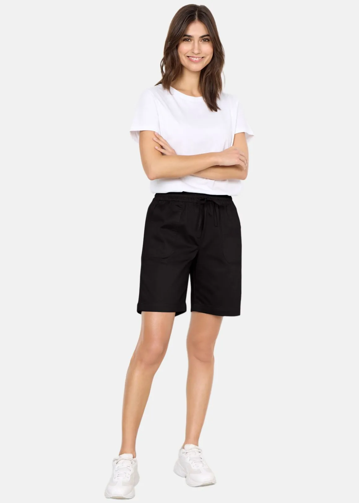 SC-Akila 24-c shorts är perfekta för varma dagar. De kombinerar komfort och stil med sin elastiska midja och justerbara dragsko. Fyra stora fickor ger praktisk förvaring, medan den baggy passformen ger en avslappnad känsla. Tillverkade i en blandning av bomull och polyester, är de både hållbara och bekväma. Kombinera med en mönstrad blus för en trendig look.