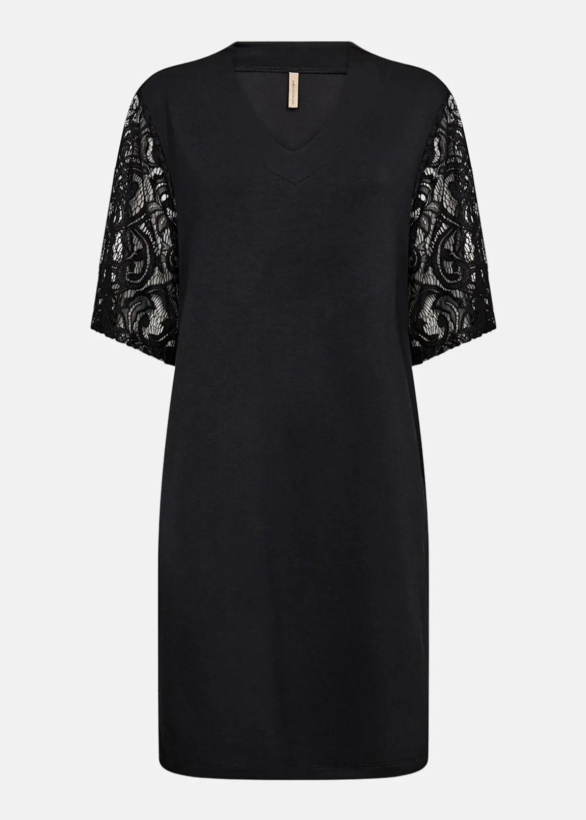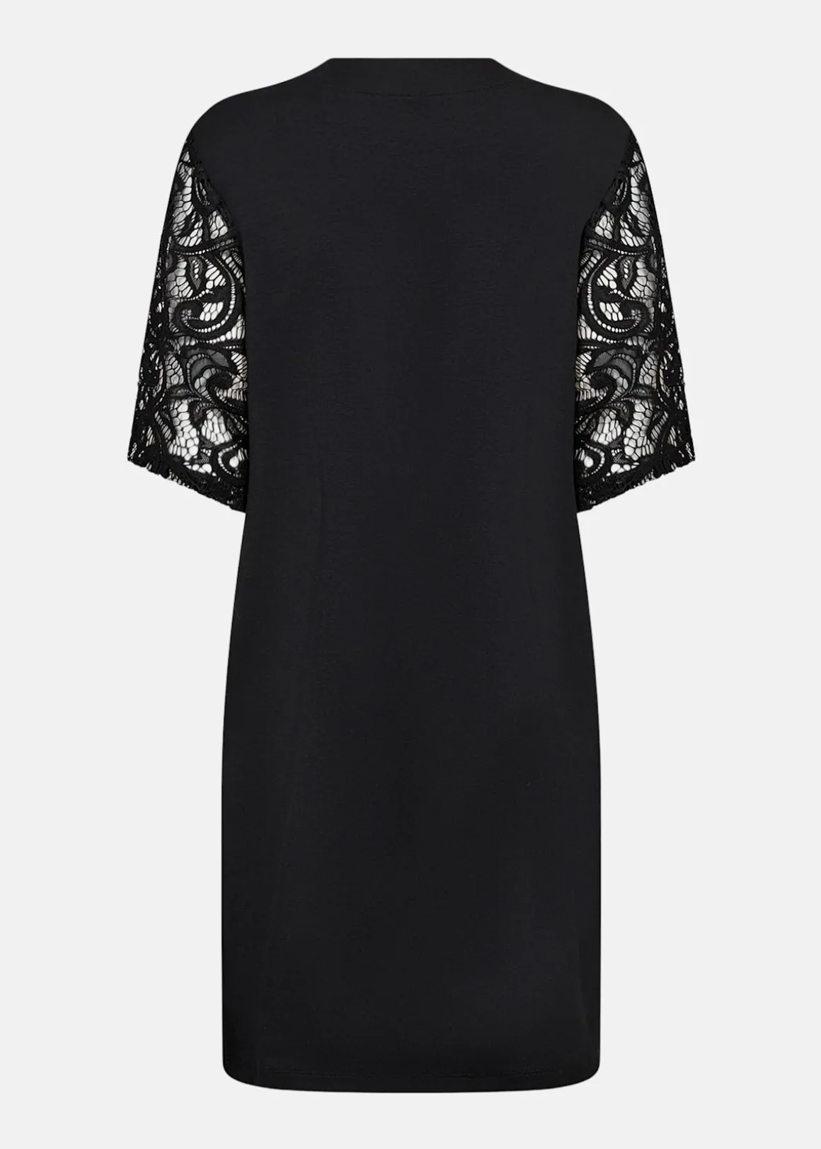 En mjuk klänning i stretchig modalmix med V-ringning och spetsdetaljer på ärmarna. Den avslappnade passformen gör den bekväm att bära, medan spetsen ger en elegant touch. Lika fin till sneakers som till smycken och klackar när du vill klä upp dig lite extra.