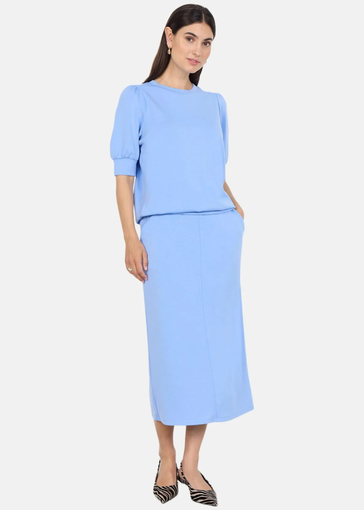 SC-Banu 83 är en topp som kombinerar komfort och stil. Den är tillverkad i en mjuk sweatshirtkvalitet, vilket gör den idealisk för avslappnade dagar. Med en enkel design och feminina detaljer som korta ärmar, erbjuder den en stilren look. Perfekt att bära med matchande sweatshorts för en komplett outfit. Skötselråd inkluderar maskintvätt i 30°C och strykning på låg temperatur. Materialet består av 48% modal, 48% polyester och 4% elastan.