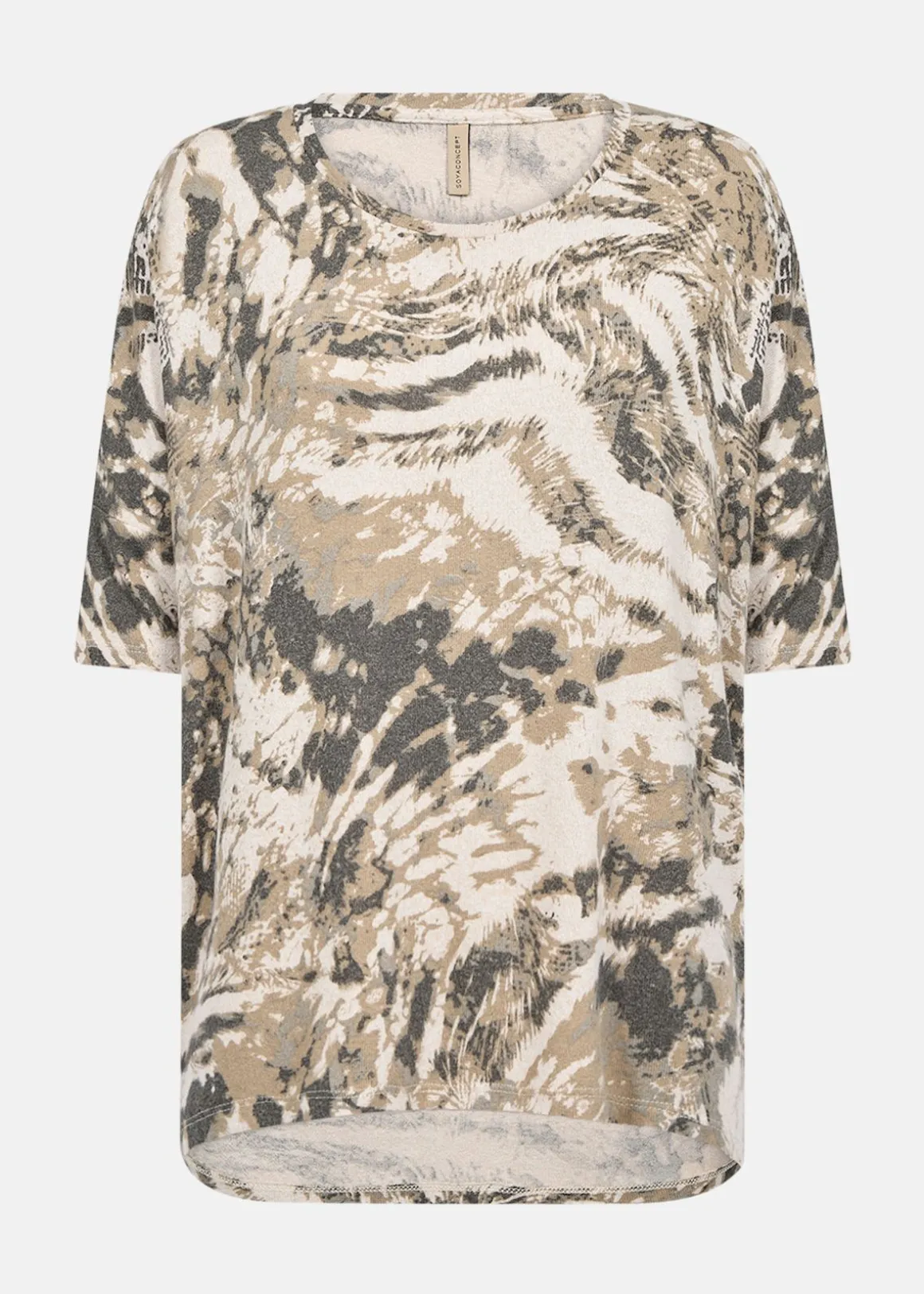 SC-Biara AOP 140 är en stilren tröja tillverkad i en blandning av viskos, polyester och elastan. Den erbjuder en bekväm passform med en rund halsringning och korta ärmar, vilket gör den perfekt för både vardag och speciella tillfällen.