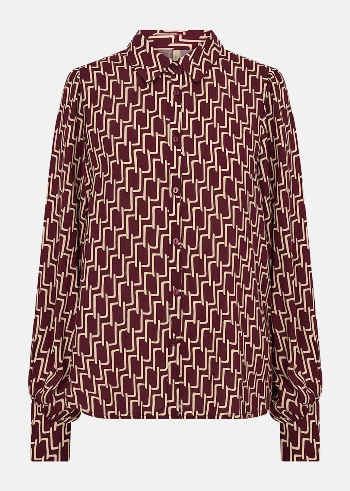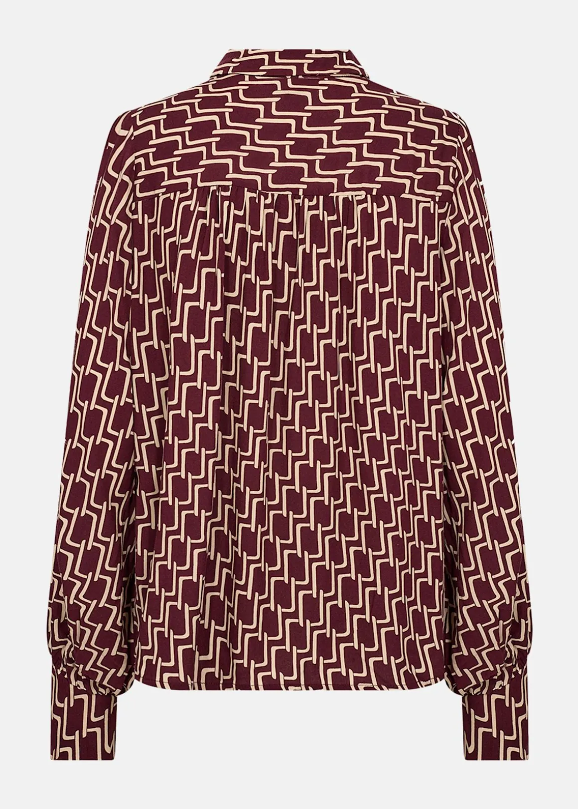 En mjuk skjorta i 100 % LENZING™ ECOVERO™ viskos med ett iögonfallande geometriskt mönster. Den klassiska kragen och knappstängningen framtill ger ett tidlöst uttryck, medan det livfulla trycket gör den lätt att styla både uppklätt och avslappnat. Ett mångsidigt plagg för dig som vill ha både komfort och karaktär.