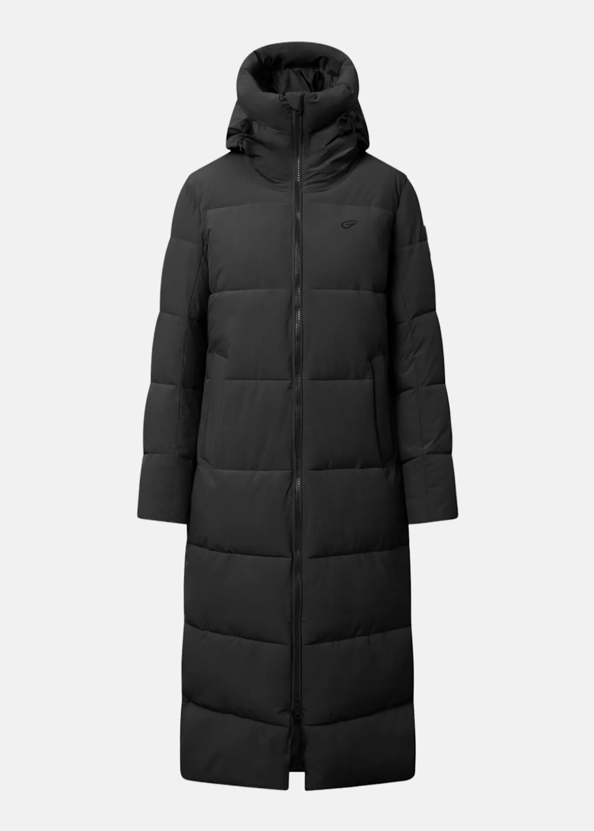 Denna långa jacka är vindtät och vattenavvisande med PFC-fri DWR-behandling och har Tech Down-fyllning på cirka 400 g för värme och komfort. Huva är väl tilltagen och frontdragkedjan är 2-vägs med återvunna dragkedjor. Jackan har två midjefickor och en innerficka med dragkedja. Den stilrena, långa silhuetten kombinerar funktion med modern design.
