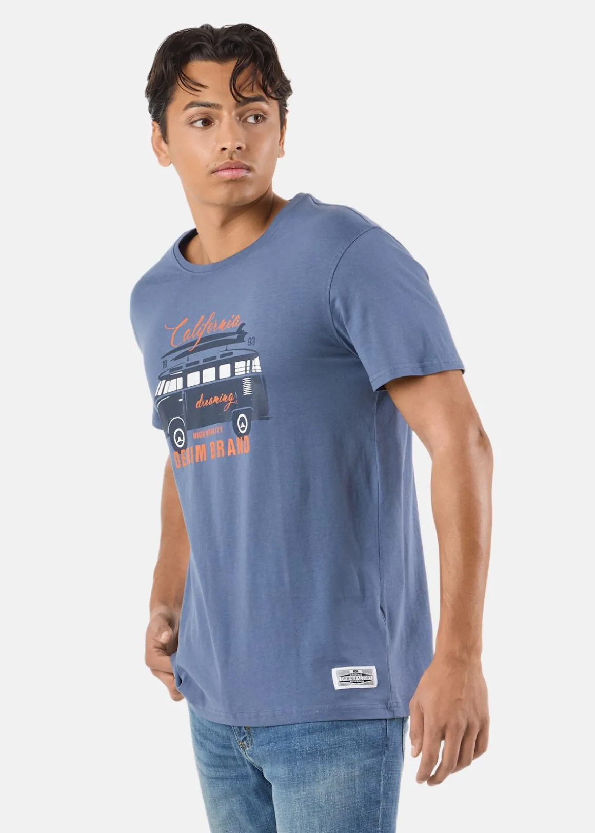 T-shirt från Denim Factory med mjukt och stretchigt material med normal passform. Rund halsringning, korta ärmar och stort logotryck framtill. Perfekt för alla tillfällen!
