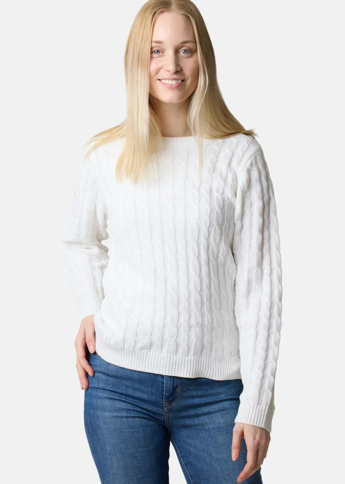 Seaside presenterar Tampa Cable Knit W, en elegant kabelstickad tröja som kombinerar stil och komfort. Dess mjuka, stretchiga material och figurnära passform gör den till ett perfekt val för en sofistikerad vardagslook. Med sin klassiska runda halsringning är den här tröjan ett måste i varje garderob.