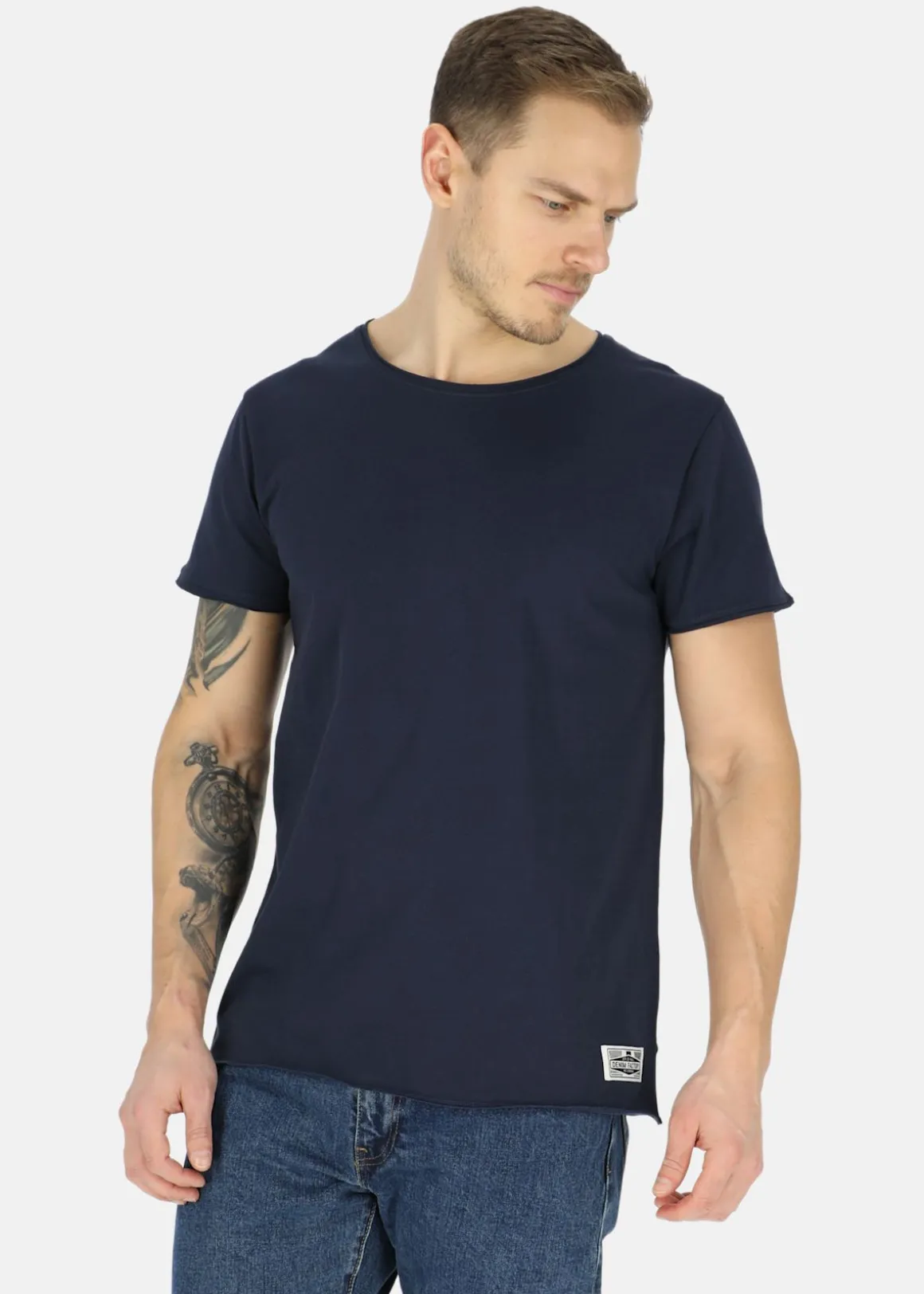 T-shirt med en unik rå kant, vilket ger den en trendig och lätt slitstark känsla. Med sin normala passform passar TDF Tee perfekt till alla typer av tillfällen, vare sig det är till vardags eller till en kväll ute. Denna kvalitetst-shirt är ett måste i varje garderob, en klassisk bas som kan matchas enkelt med alla stilar. Skäm bort dig själv med Denim Factorys klassiska t-shirt.