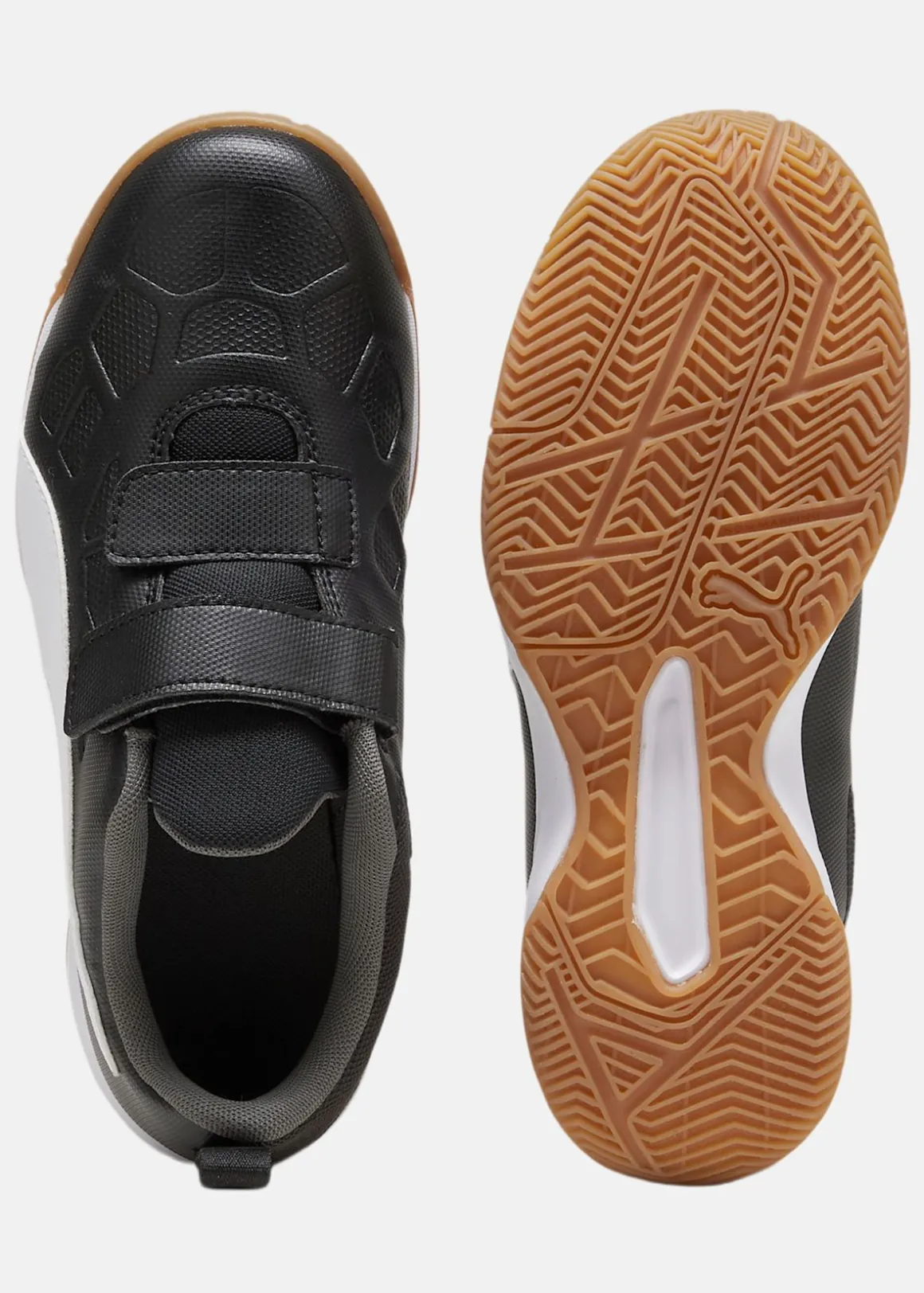 Tenaz V Jr från Puma kombinerar sportig design med en följsam passform för att optimera komfort och prestanda. Ovandelen i greppvänlig skinnimitation och non marking gummi på yttersulan gör dem idealiska för både inomhus- och utomhusaktiviteter. Kardborrband gör på- och avtagning enkel och snabb, vilket passar barn och den aktiva livsstilen perfekt.