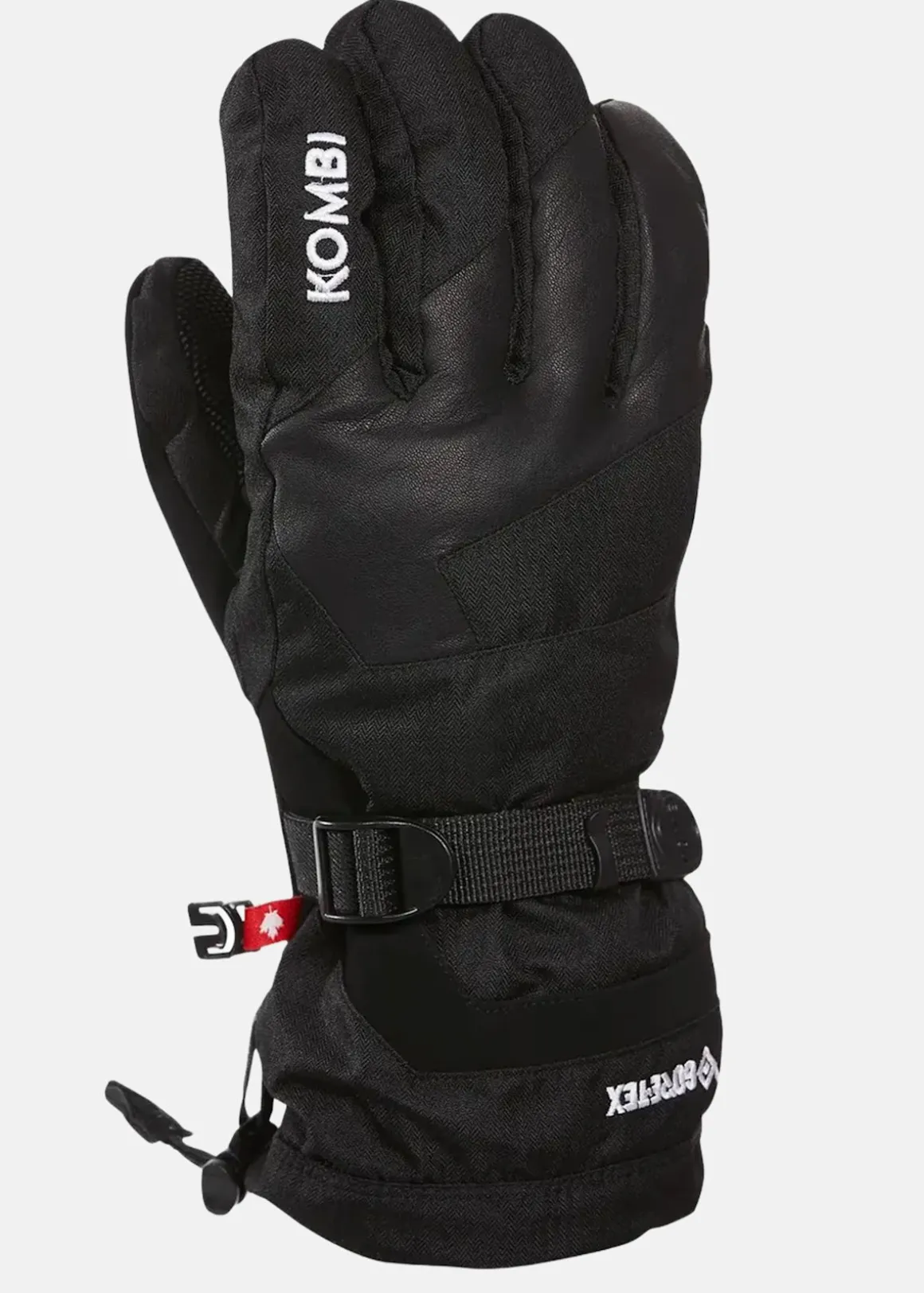 Vind- och vattenavvisande fingervantar med justerbara handledsremmar och dragskor på muddarna.