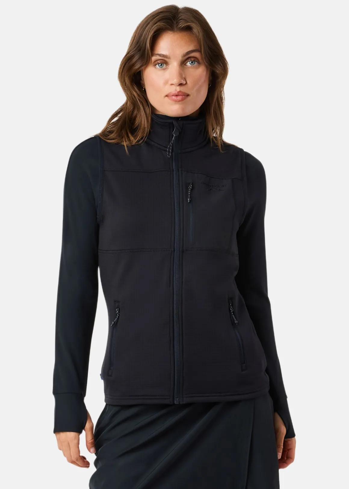 Denna väst erbjuder en perfekt kombination av stil och funktionalitet. Med sin dragkedja och ståkrage ger den ett modernt utseende samtidigt som den håller dig varm. Det slitstarka materialet med 4-vägs stretch säkerställer optimal rörelsefrihet och komfort. Praktiska fickor, inklusive en bröstficka med dragkedja, ger gott om förvaringsutrymme. Materialblandningen av polyester och spandex gör västen både hållbar och fukttransporterande, vilket gör den idealisk för olika aktiviteter.