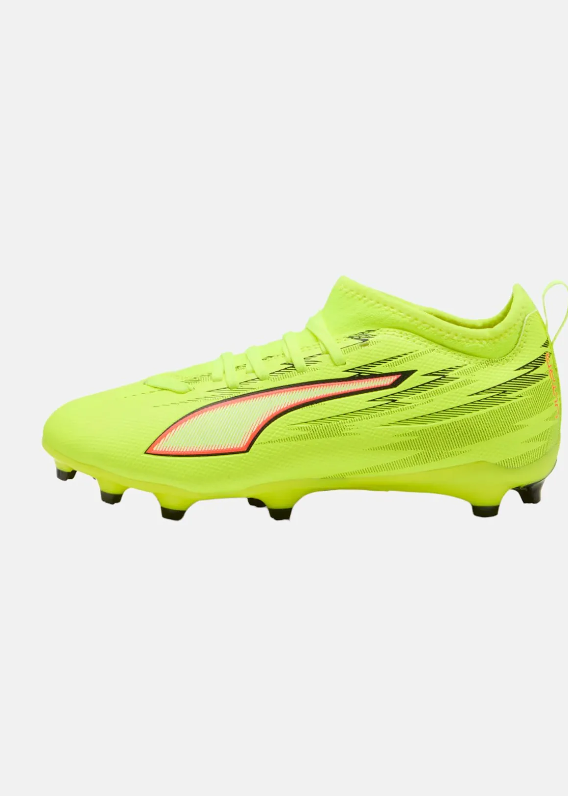 ULTRA 6 har en lätt mesh-ovandel med minst 30 % återvunnet material och snörning för säker passform. SPEEDSYSTEM-yttersulan och FastTrax-studs ger energiåtergivning, multidirektionellt grepp och stabilitet vid snabba riktningsförändringar. Tre rundade studs på sidan gör det möjligt att växla mellan fast mark och konstgräs. GripControl Skin ger kontroll över bollen.