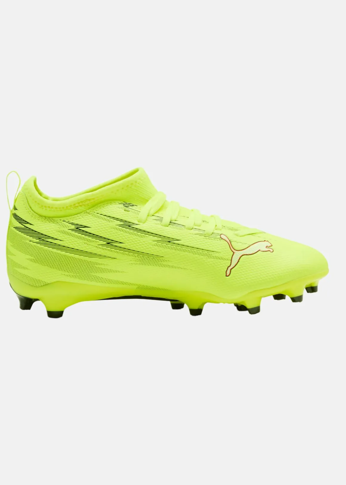 Fotbollsskor från PUMA för ungdomar, lämpliga för spel på natur- och konstgräs.