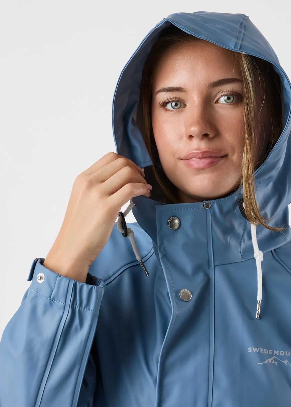 En ofodrad regnjacka från Swedemount som är helt vind- och vattentät. Dess yttermaterial är mycket tåligt i sig självt men har ökat skydd genom svetsade sömmar och ytbehandling. Jackan har dragkedja och vindslå med knappar längs öppningen så att du ska kunna få det ordentligt tätt, ventilations-veck bak på ryggen och en huva med dragsnören för enkel justering. Även dragskor i nederkanten för att kunna justera vidden och passformen, knappar i ärmslut samt två stora fickor framtill med ficklock i en vinklad position för att undvika att vatten tar sig in. Reflekterande logotryck på bröstet som ger ökad synlighet. En regnjacka som både håller dig stilren och torr oavsett väder. Kan användas på flera årstider så länge man klär sig med varma lager undertill vid kyligare dagar då jackan i sig är ofodrad.