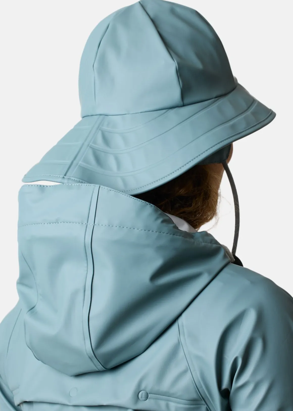 Praktisk regnhatt. Vattentät hatt med en justerbar hakrem och värmande öronlappar.
