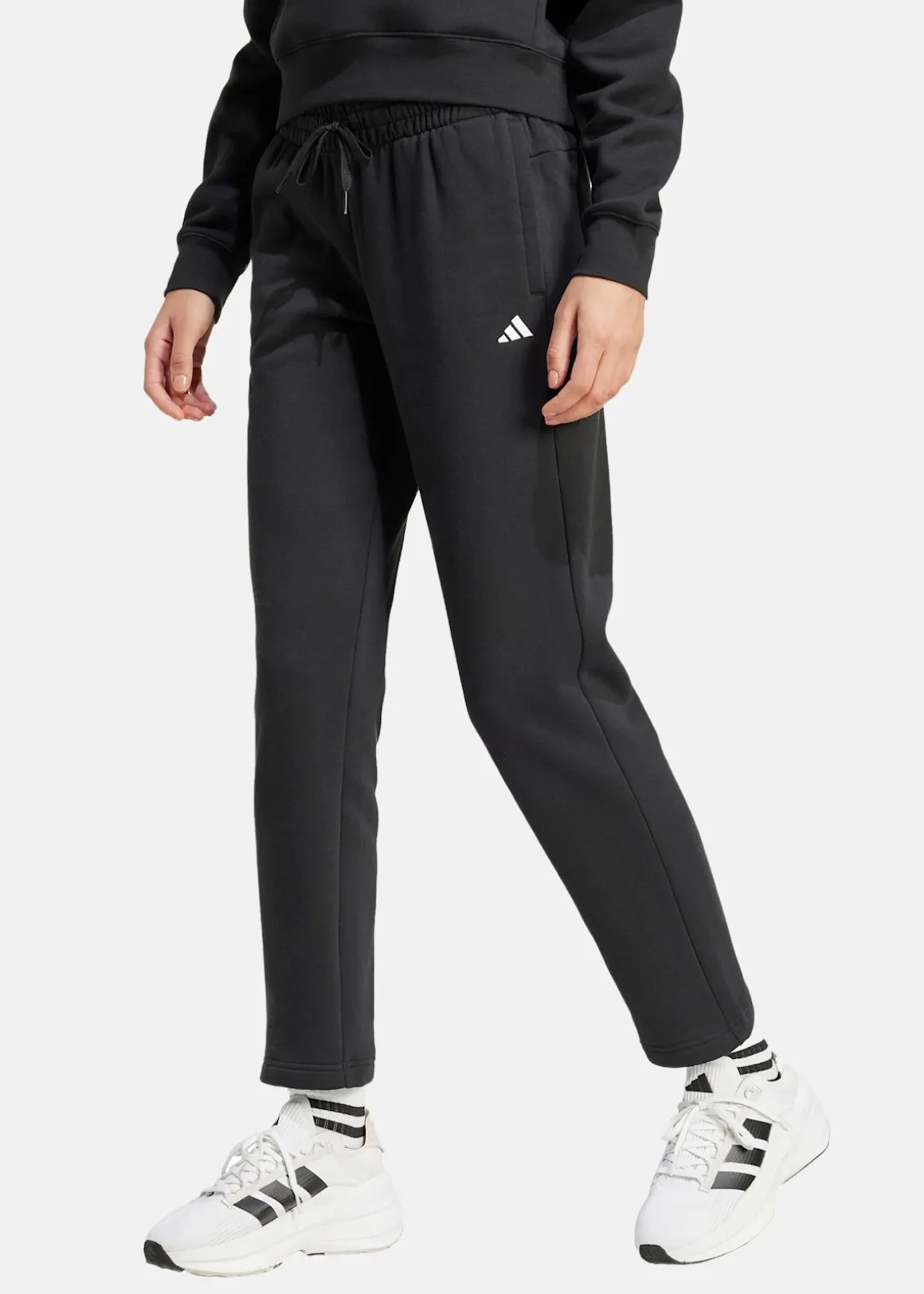 Adidas W SL FC PT sweatpants kombinerar stil och komfort med en elastisk midja och en rak modell. Loggan på benet ger ett sportigt utseende, medan de öppna handfickorna erbjuder praktisk förvaring. Dessa byxor passar perfekt för både avslappnade stunder och aktiva dagar.